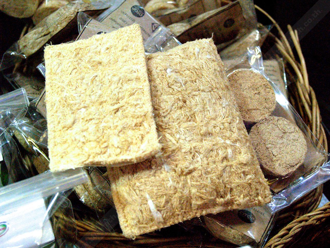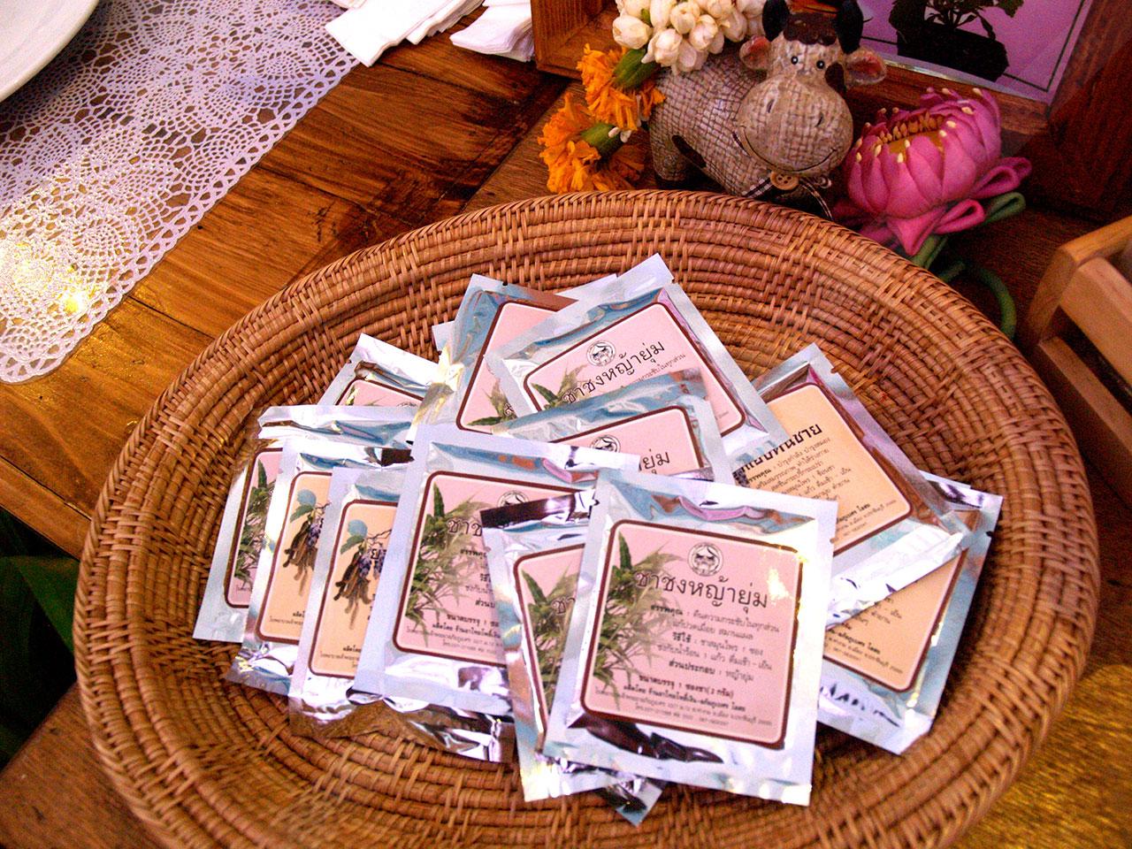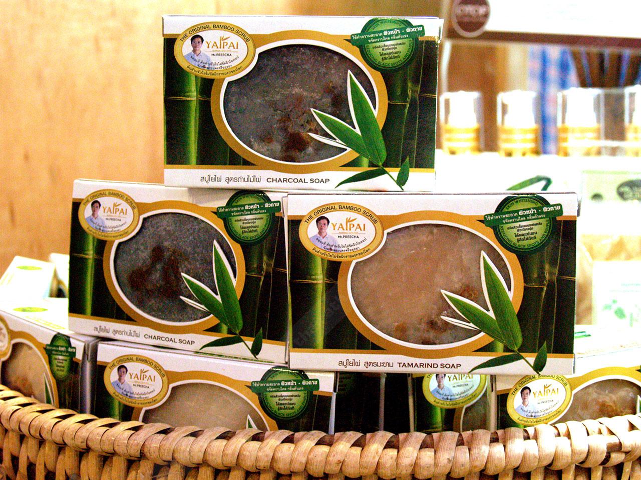 - สบู่สมุนไพรที่มีใยไผ่อยู่ในเนื้อสบู่ มี 3 สูตร คือ สบู่มะขาม ช่วยให้ผิวกระจ่างใส ลดฝ้า กระ จุดด่างดำ