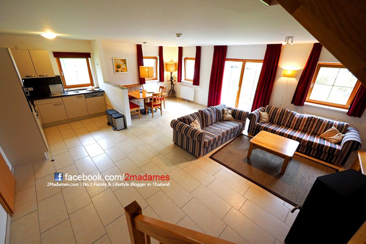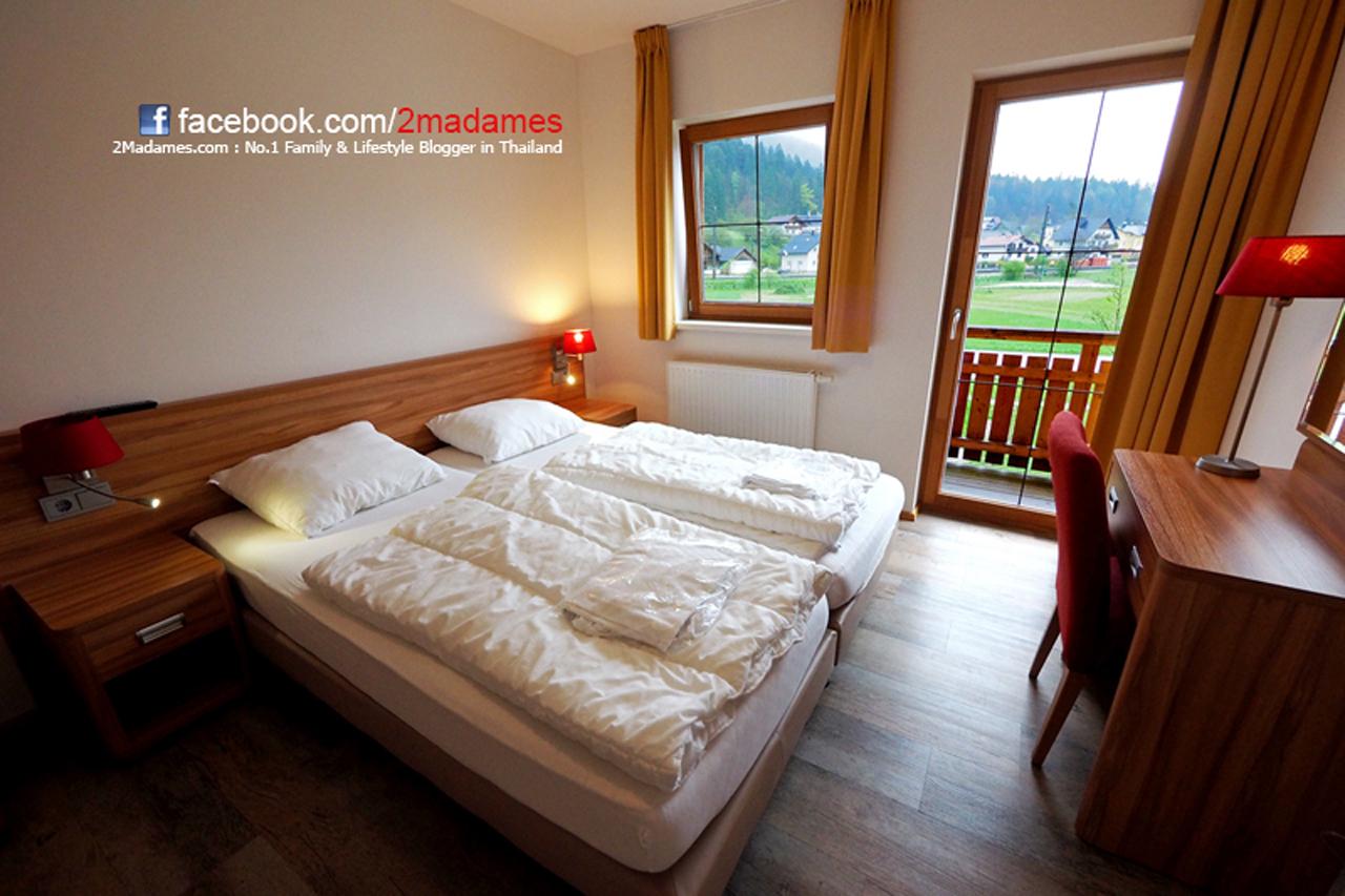 มาแล้วก็เก็บสัมภาระเข้าที่พักกันก่อน กับที่พักที่ชื่อว่า Resort Obertraun รีสอร์ตนี้อยู่ห่างจาก Hallstatt ประมาณ 6 กม. ครับ เป็นเมืองที่อยู่ฝั่งตรงข้ามทะเลสาบของฮัลสตัทท์นั่นเองครับ ที่พักเรามีห้องนั่งเล่นกว้างมากจริง ชุดเครื่องครัวครบครันเช่นเคย มีโซฟา โต๊ะทานข้าว เรียกว่าดีมากอ่ะ ราคาอยู่ที่ 228 ยูโรครับ