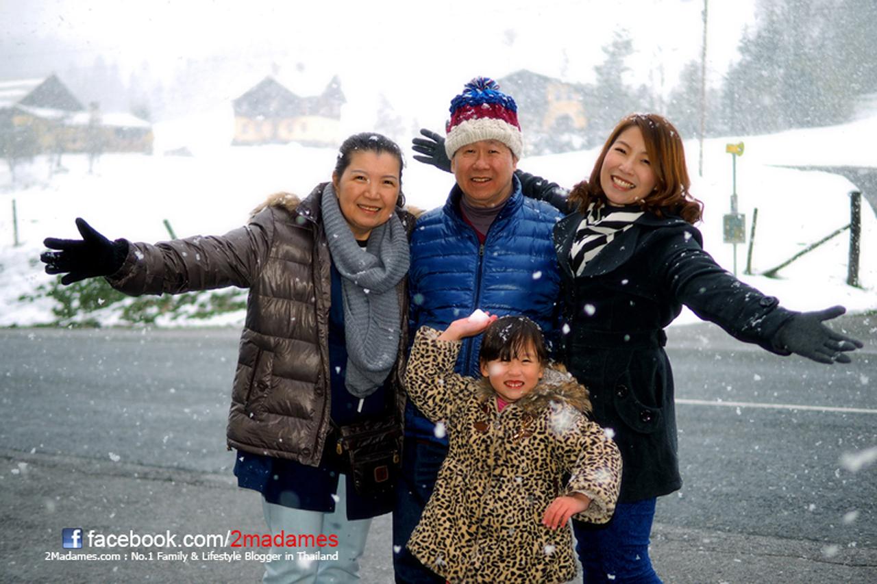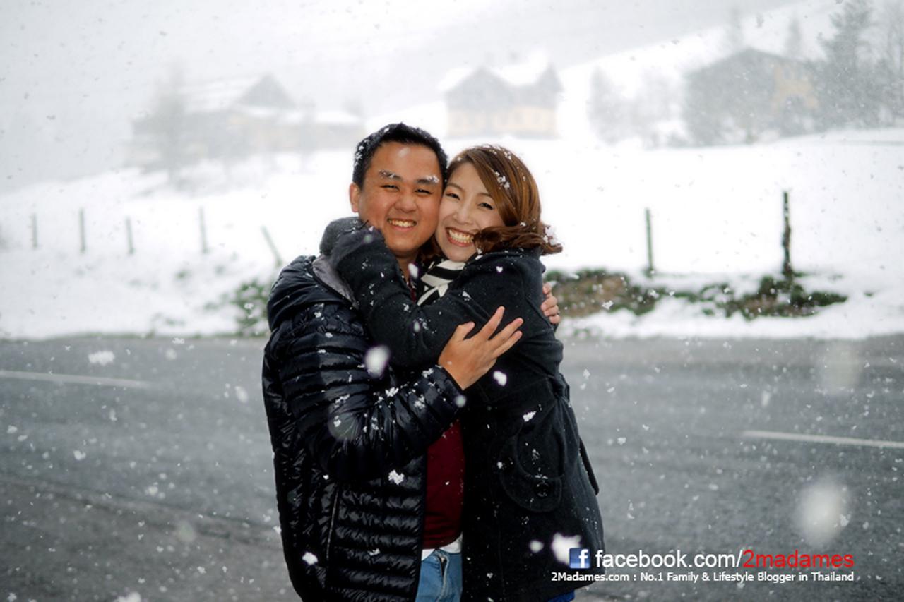 พอขับรถเข้าใกล้ Hallstatt ผ่านหมู่บ้านเล็กๆ มีหิมะที่ตกลงมาก่อนหน้านี้ ก็เลยถือโอกาสยืดเส้นยืดสายลงจากรถมาเล่นหิมะกันซะเลย