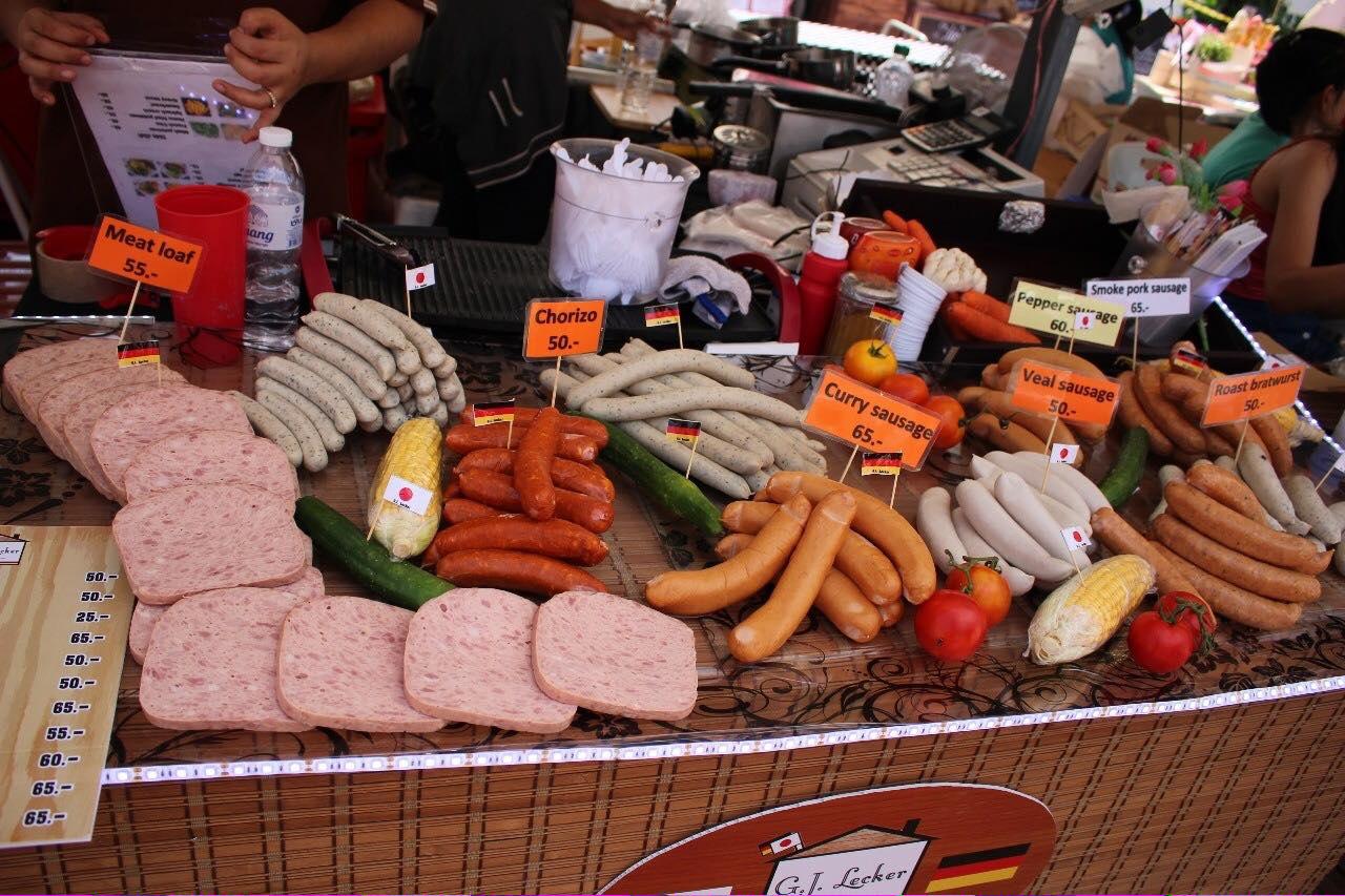 ไม่หมดแค่นั้น ใครที่อยากลิ้มลองอาหารต่างชาติ ที่นี่เขาก็มีสินค้านำเข้ามาให้เลือกช็อปเลือกชิมกันด้วย ที่เด่นๆ ในตลาด ก็คงจะเป็น ร้าน G.J. Lecker ที่รวมไส้กรอกนานาชาติ มาเอาใจคุณแม่บ้าน รับรองว่าจะได้ชิมไส้กรอกหลายชนิดจากยุโรป ญี่ปุ่น หลายยี่ห้อชื่อดัง