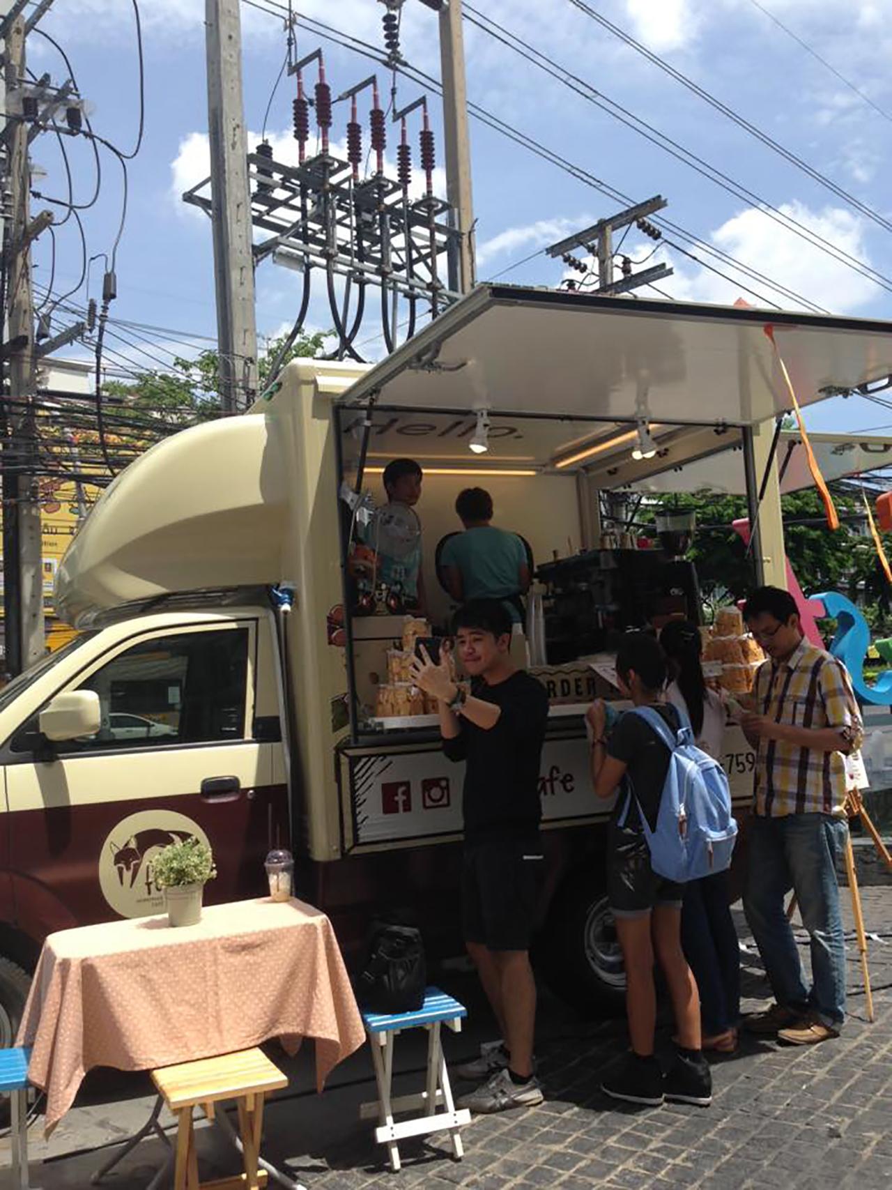 โดยเฉพาะร้านอาหารที่ขายกันบนรถ หรือที่เรียกว่า ฟู้ดทรัก กระแสอาหารแนวใหม่ที่กำลังอินเทรนด์อยู่ตอนนี้ ก็มีมาเปิดบริการในตลาดแห่งนี้ ให้ได้ชิมกันหลายร้าน เรียกว่าเป็นคาราวานฟู้ดทรัก ระดับแนวหน้าของวงการเลยทีเดียว ได้แก่