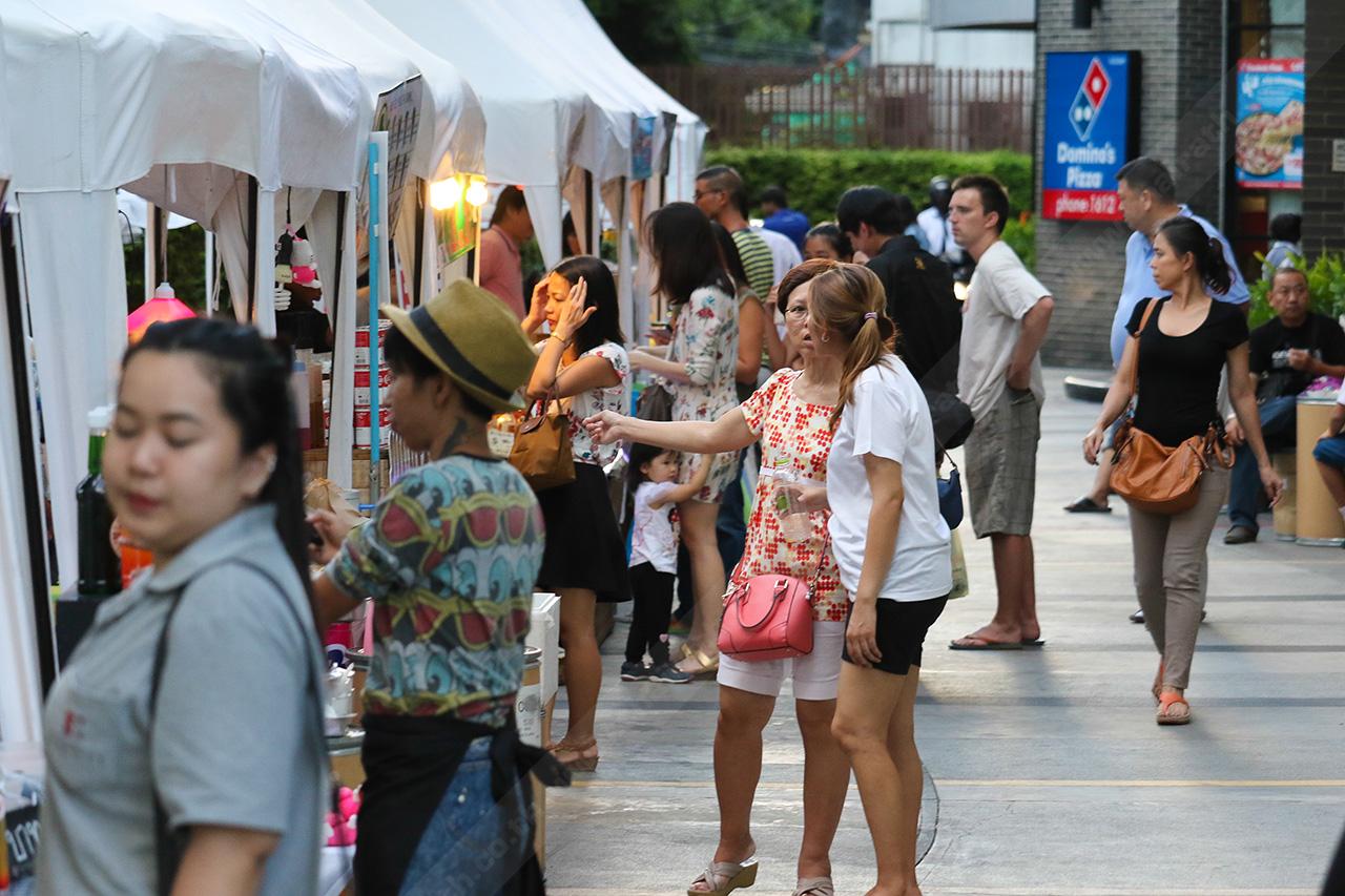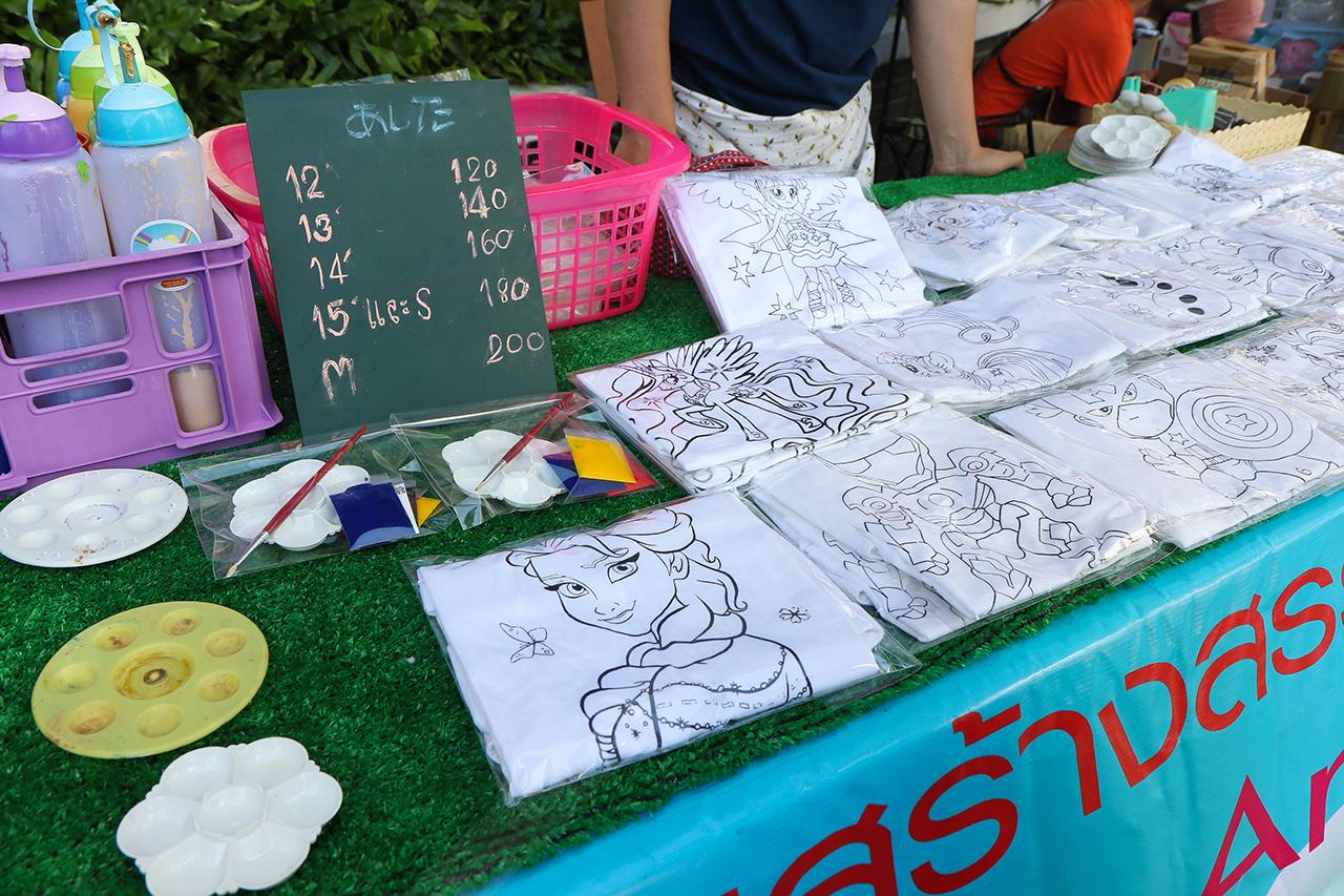 "อันนี้ตลาดอื่นยังไม่มี เราอยากทำโซนนี้ขึ้นมา เนื่องจากว่าตลาดเราตั้งอยู่หน้าคอมมิวนิตี้มอลล์ เราต้องการให้ตลาดของเราเป็นส่วนหนึ่งของผู้คน แล้วสังเกตว่าคนที่มาห้างส่วนใหญ่มากันเป็นกลุ่มครอบครัว มาใช้เวลาร่วมกัน ดังนั้น ก็เลยมองว่าพื้นที่ส่วนนี้ก็สำคัญนะ ในการที่พ่อแม่ลูกจะได้มีกิจกรรมทำร่วมกันในวันว่าง ซึ่งตัวกิจกรรมก็เป็นชิ้นงานแบบ DIY ด้วย เช่น การวาดรูประบายสี เพนท์เสื้อ ทำคัพเค้ก" ภาณุเมศวร์บอก