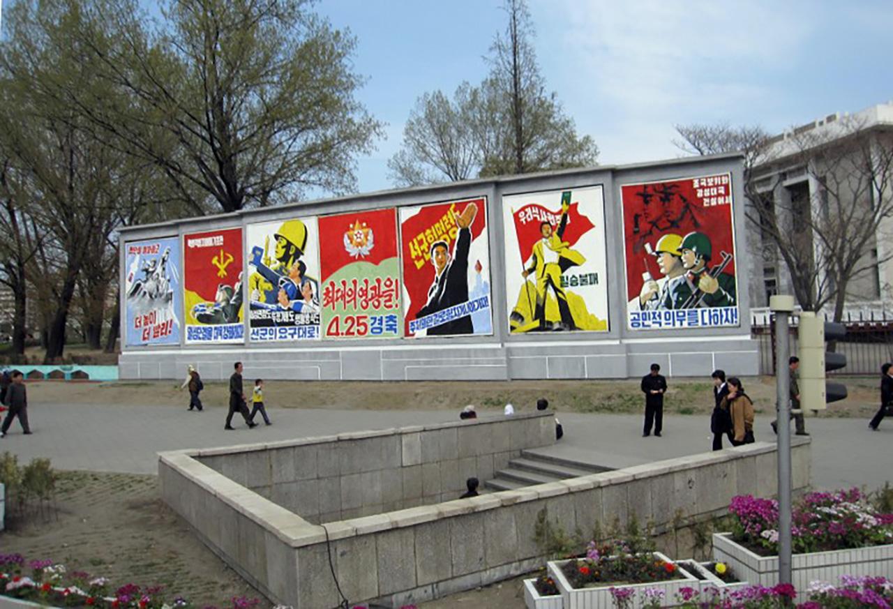 - ภาพโฆษณาที่ขึ้นตามบิลบอร์ดส่วนใหญ่ เป็นโฆษณาชวนเชื่อ เช่น ภาพวาดนั้นแสดงถึงฮีโร่ คนชนชั้นแรงงาน รูปเด็กถืออาวุธ หรือภาพเด็กและประชาชนทำสัญลักษณ์กำมือขวาวางไว้ที่หน้าอกซ้าย เป็นต้น
