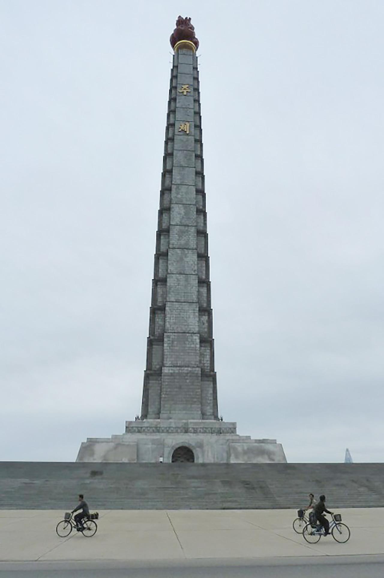 ประติมากรรมรูปคน 3 คนขนาดใหญ่ ที่เป็นตัวแทนของชาวเกาหลีเหนือ ได้แก่ คนถือฆ้อน (คนงาน) คนถือเคียว (ชาวนา) และคนถือพู่กัน (ผู้เชี่ยวชาญสาขาต่างๆ) แสดงให้เห็นถึงชนชั้นต่างๆ ที่ประกอบขึ้นเป็นประเทศเกาหลีเหนือ