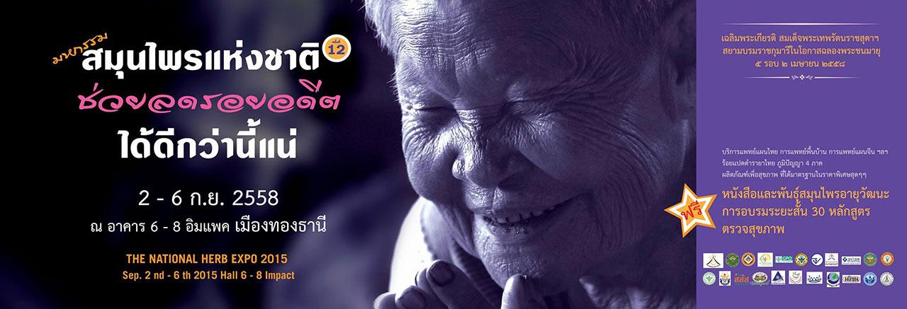วันที่ 2-6 ก.ย. 2558 ชวนคนรักสุขภาพไปเที่ยวงาน "มหกรรมสมุนไพรแห่งชาติ ครั้งที่ 12" ณ Hall 6-8 ศูนย์แสดงสินค้าอิมแพ็คเมืองทองธานี ภายในงาน พบกับ ความก้าวหน้าของงานวิจัยและการพัฒนาต่อยอดเป็นผลิตภัณฑ์สมุนไพรไทยต่างๆ ซึ่งปีนี้ไฮไลท์อยู่ที่การเปิดตัวสูตรเครื่องดื่มสมุนไพรไทย 2 สูตร คือ "น้ำผัวหลง-น้ำเมียหลง"