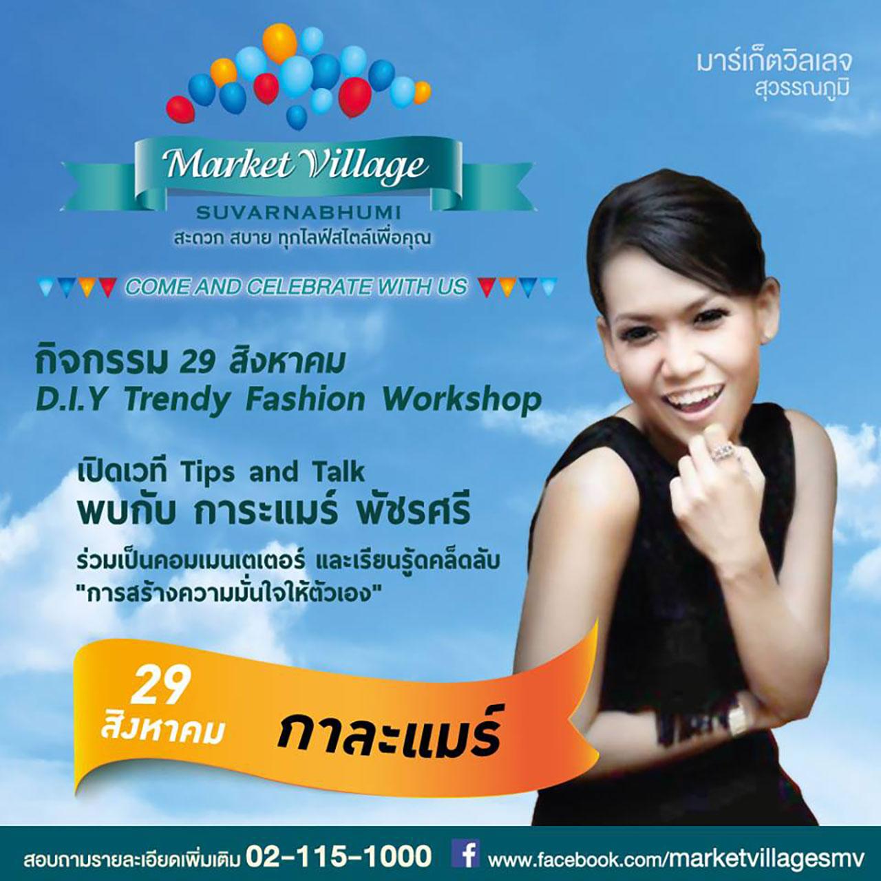 วันนี้-30 ส.ค. 2558 ชวนไปเที่ยวพร้อมช็อปสินค้าลดราคาในงาน "Market Village Come and Celebrate with us" ณ ลานกิจกรรมชั้น 1 ศูนย์การค้า Market Village บางนาตราด กม.12-กิ่งแก้ว ภายในงานมีกิจกรรมให้ร่วมสนุกมากมาย และชิงของรางวัลกลับบ้านฟรีๆ นอกจากนี้ยังจะได้ช็อปปิ้งเสื้อผ้าแบรนด์ดังลดกว่า 70% และได้พบกับเซเลปที่จะมาชวนคุณทำกิจกรรมสนุกๆ ร่วมกัน โดยในวันที่ 29 ส.ค. 2558 นี้ มาเรียนรู้การสร้างความมั่นใจ กับ กาละแมร์ พัชรศรี นักเขียนและพิธีกรชื่อดัง สอบถามเพิ่มเติม โทร. 0 2115 1000
