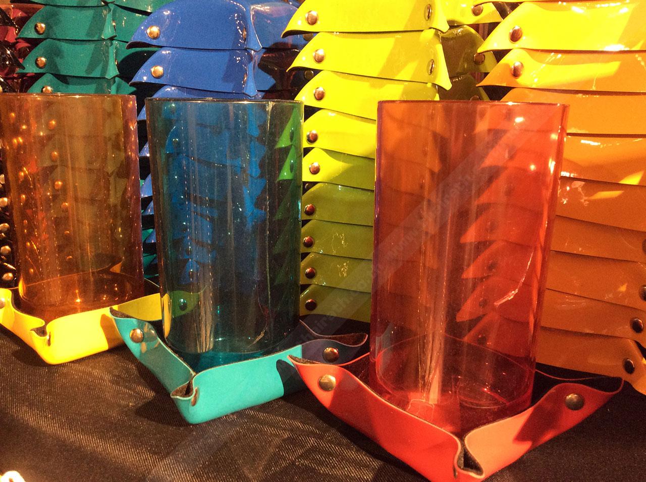 เริ่มกันที่ร้าน Jonathan Lipkens ร้านนี้ขายที่รองแก้วแฮนด์เมดสไตล์เก๋ไก๋ โดดเด่นด้วยสีสันสดใสสะดุดตา มีทั้งสีแดง สีส้ม สีฟ้า สีน้ำเงิน สีเหลือง สีขาว สีดำ และอีกสารพัดสีตามที่ใจนึก มีให้เลือกหมด วัสดุเป็นหนังแก้ว ด้านในเป็นกำมะหยี่ ใช้งานได้ทนทาน