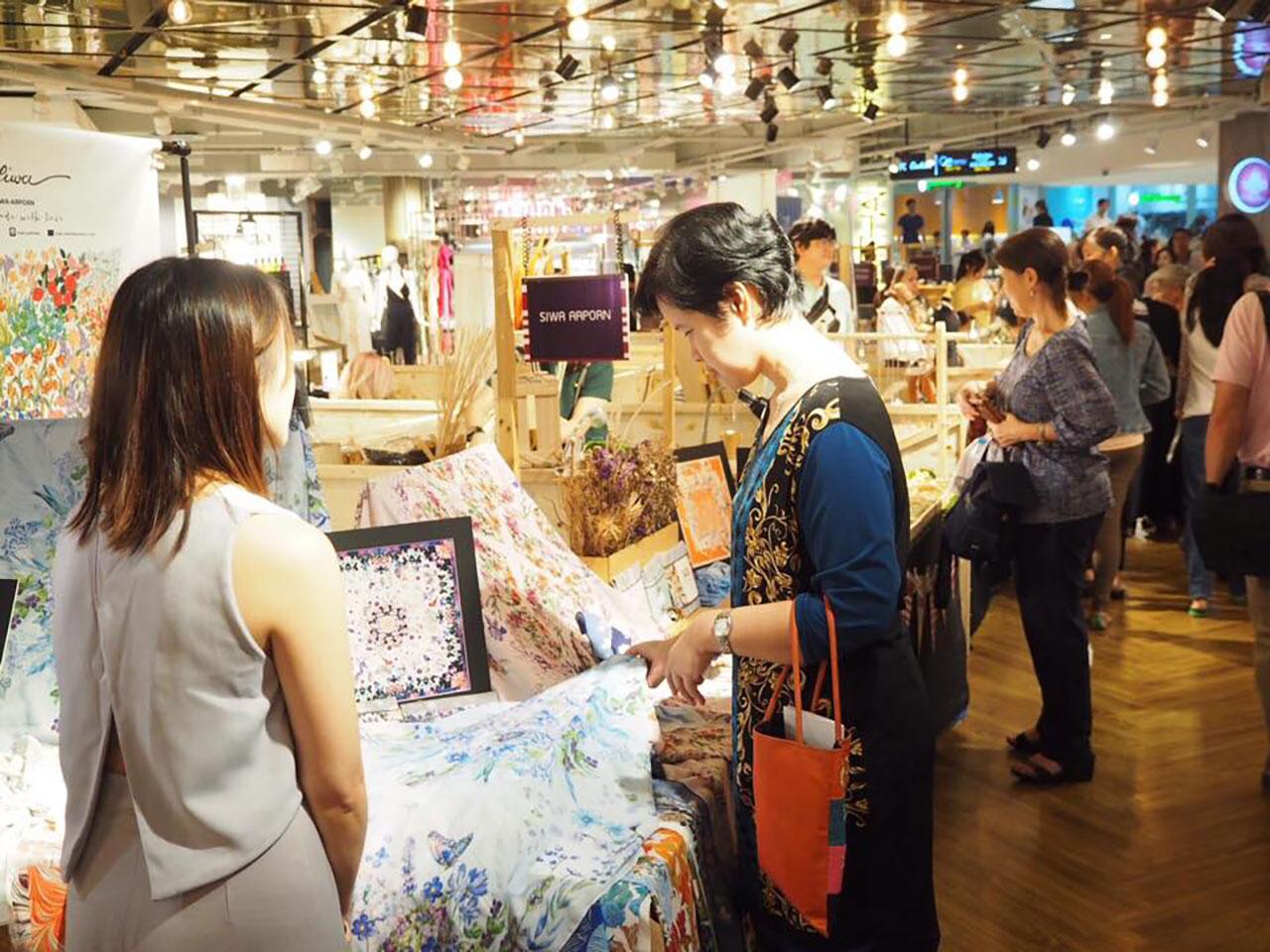 ส่วนซิกเนอเจอร์ของร้าน ที่ขายดีมากๆ ก็จะเป็นลายดอกไม้ทับ และมีลายที่ทำจากดอกไม้ไทย เช่น ดอกมะลิ ดอกลีลาวดี ดอกกุหลาบขาว เป็นต้น สนนราคาผืนละ 1,590 บาท ราคาเดียวเท่ากันทุกผืน แต่ถ้ามาซื้อหน้าบูธแบบนี้ก็จะมีส่วนลดให้ลูกค้า โดยถ้าซื้อ 2 ผืนขึ้นไป มอบส่วนลด 15% สนใจสอบถามได้ที่เบอร์ 08 1712 8668 หรือจะเข้าไปดูลวดลายที่ชอบก่อนก็ได้ที่ FB : siwa.arporn
