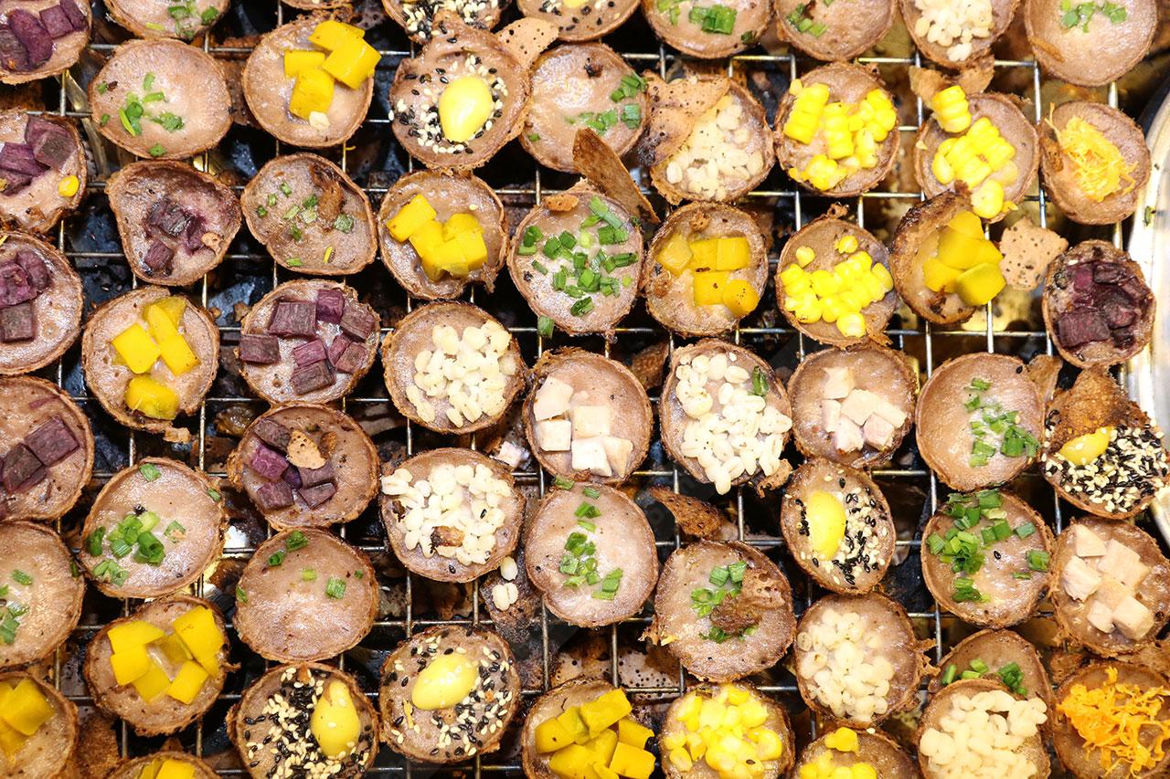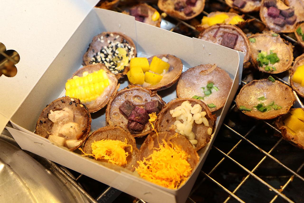 เป็นขนมครกโบราณแป้งบางกรอบ มีให้เลือกถึง 9 หน้าด้วยกัน คือ มันม่วง เผือก ข้าวโพด ต้นหอม แปะก๊วยงา ฝอยทอง หมี่กรอบ ฟักทอง ข้าวบาร์เลย์ หน้าตาดี แถมอร่อยถูกใจทุกเพศทุกวัย