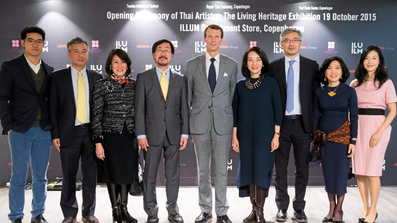 บริษัท กลุ่มเซ็นทรัล จำกัด ร่วมฉลองความสัมพันธ์อันดีระหว่างราชอาณาจักรไทยและราชอาณาจักรเดนมาร์ก จึงร่วมกับสถานเอกอัครราชทูตไทย ณ กรุงโคเปนเฮเกน ประเทศเดนมาร์ก และศูนย์ส่งเสริมศิลปาชีพระหว่างประเทศ (องค์กรมหาชน) จัดนิทรรศการ “Thai Artisty : The Living Heritage” โดยนำงานหัตถศิลป์ไทยร่วมสมัยไปจัดแสดงที่ห้างสรรพสินค้าอิลลุม ห้างสรรพสินค้าที่มีอายุเก่าแก่และได้รับความนิยมของชาวเดนมาร์ก ณ กรุงโคเปนเฮเกน พร้อมด้วยนิทรรศการเฉลิมพระเกียรติสานสัมพันธ์ 2 แผ่นดิน ที่บอกเล่าเรื่องราวความสัมพันธ์ของทั้ง 2 ประเทศ ซึ่งจัดแสดงถึงวันที่ 1 พ.ย.
