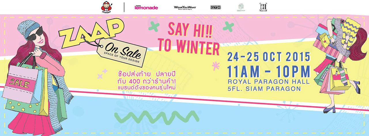 วันที่ 24 - 25 ต.ค. 2558 ชวนสาวๆ มาช็อปสินค้าลดราคาในงาน "Zaap on sale ครั้งที่ 5" ณ ฮอลล์ 1-3 รอยัลพารากอนฮอลล์ ภายในงานพบกับ ร้านค้าแบรนด์ดังของคนรุ่นใหม่กว่า 400 ร้านค้า ที่จะมารวมตัวกันที่งานนี้ ภายใต้ธีม "Space of your design" มีการโชว์ผลงาน และการจำหน่ายสินค้าที่ขนมาลดราคาแบบจุใจ มีโปรโมชั่นพิเศษมากมายให้ได้ช็อปกันชิลๆ ที่สำคัญมีสินค้าไอเดียเก๋ๆ ให้เลือกชมเพียบ