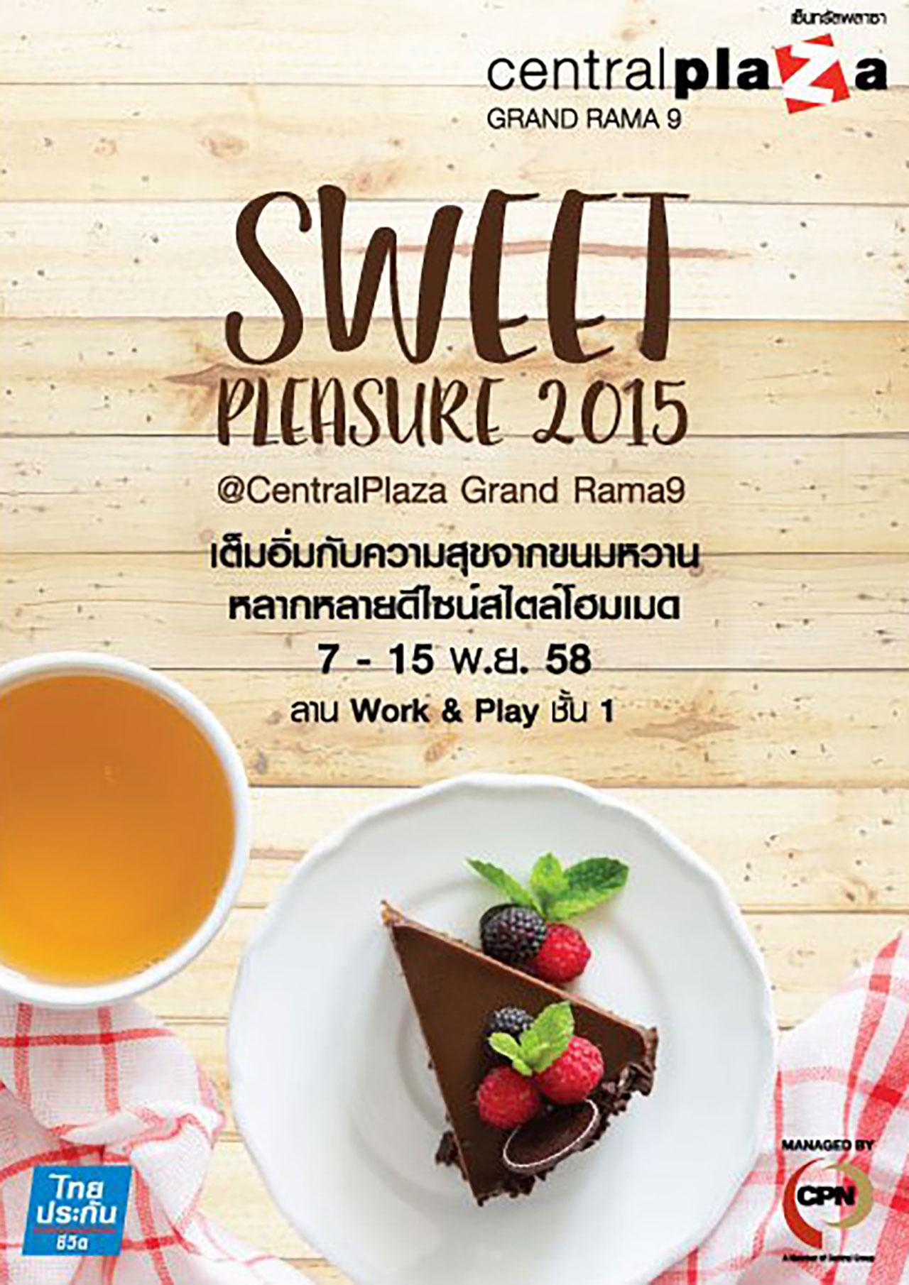 วันนี้ - 15 พ.ย. 2558 ชวนคนชอบทานขนมไปอร่อยฟินๆ ในงาน "SWEET PLEASURE" ณ ชั่น 1 ศูนย์การค้าเซ็นทรัลพลาซา แกรนด์ พระราม 9 ภายในงานพบกับ ขนมหวานหลากหลายดีไซน์ สไตล์โฮมเมด และขนมสำหรับคนรักสุขภาพกว่า 40 ร้านค้าชื่อดัง เช่น Ice Cream Tee, Onemore, Sweet Revolution, Bung O Pang, Kyo Roll En, Hokkaido, Ms.Sasa, Boston's Cup by แม่นุ่น, Hola Churros, Flowerpot Cafe, Baby Castella, Chef joe's Bake Shop, OMG Oh Mango, White Day Patisserie, Culinartz และร่วมสนุกถ่ายภาพติด Hashtag
