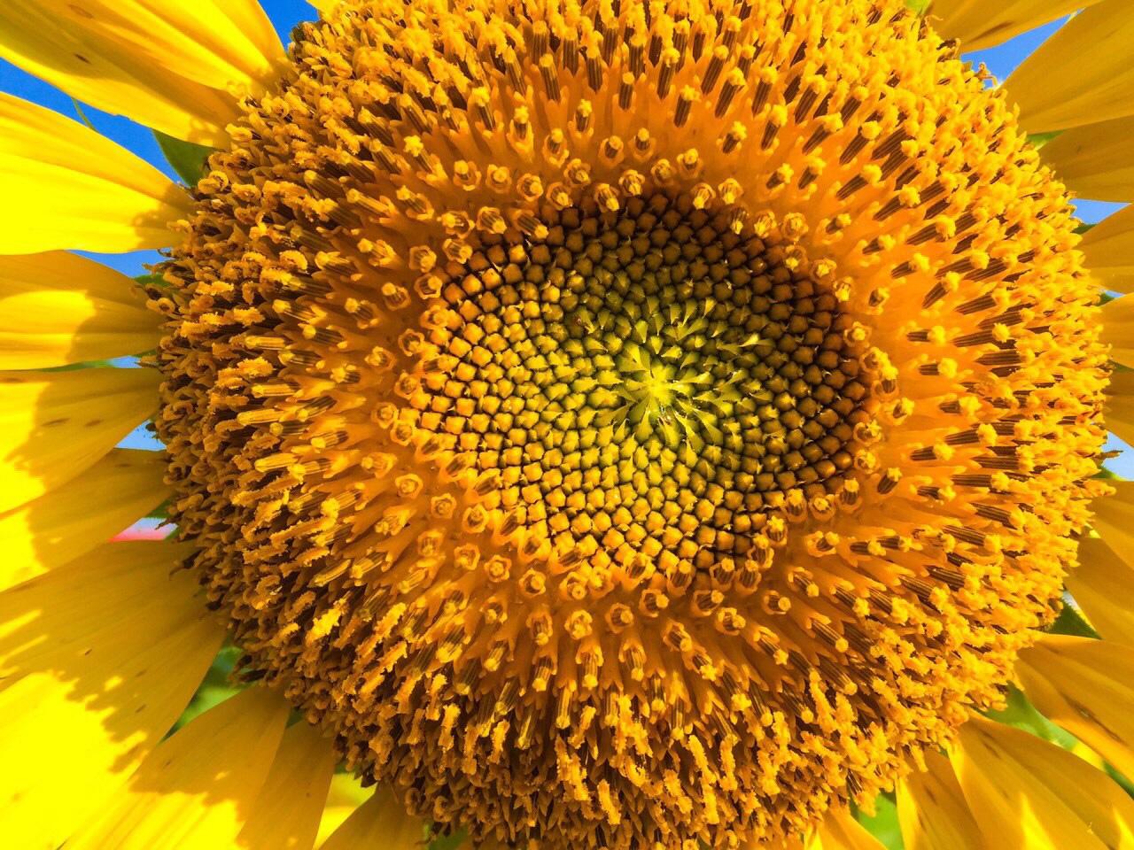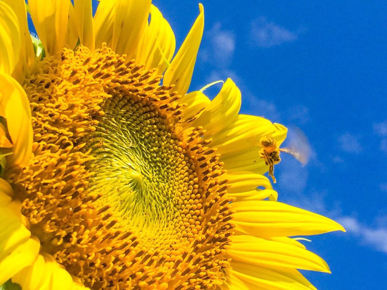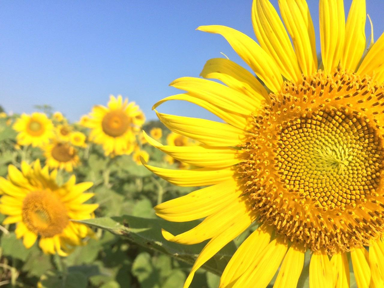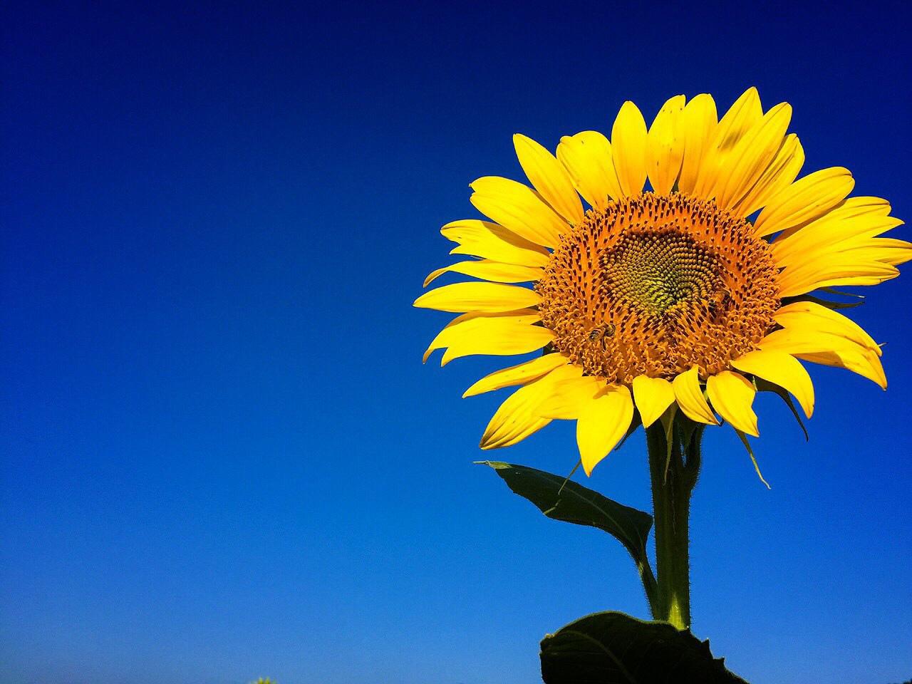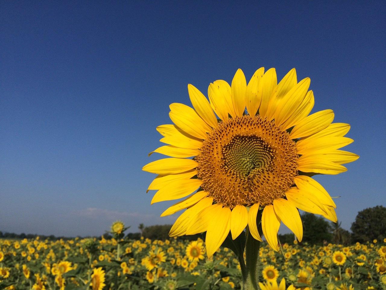 - ภาพดอกทานตะวันสีเหลืองตัดกับสีท้องฟ้าสีสดใส
