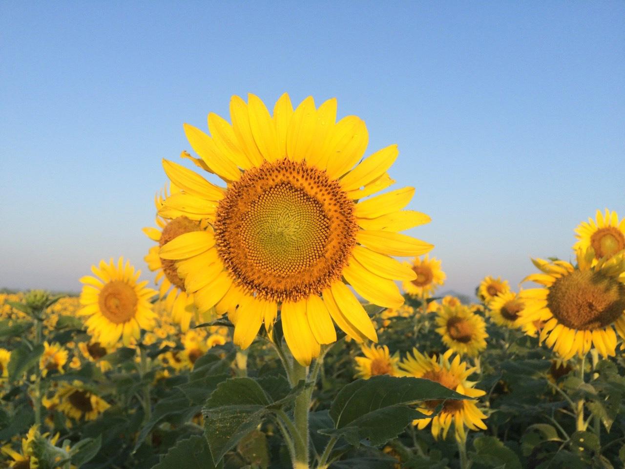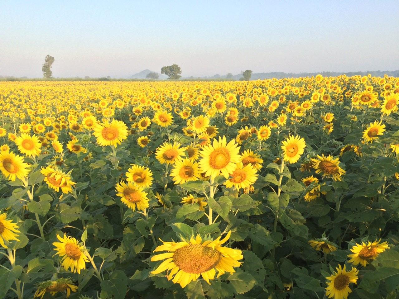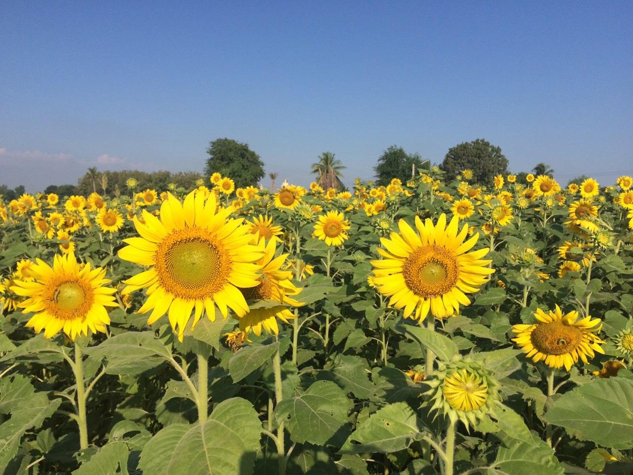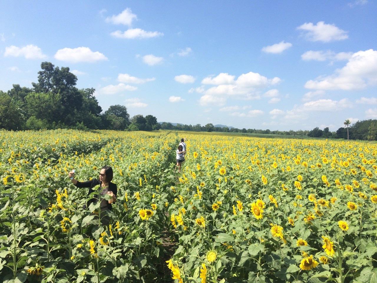 ถึงแม้จะเคยเห็นรูปดอกทานตะวันสวยๆ มาเยอะ แต่เชื่อเถอะว่า...ไม่สวยเท่ากับได้มาเห็นด้วยตาตัวเองหรอกนะ ขอบอก! เพราะช่วงเวลาแห่งการซึมซับความสวยความงามของมวลหมู่ดอกทานตะวัน มันช่างฟินเอามากๆ จนอยากจะให้เข็มนาฬิกาหมุนช้าลงเลยทีเดียว