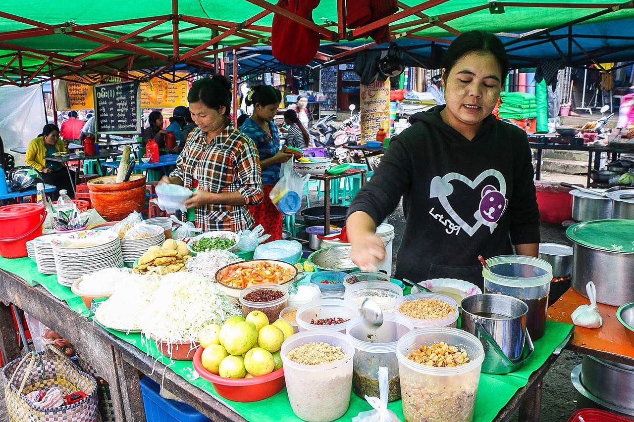ด้วยความที่เมืองแห่งนี้ รวบรวมเอาผู้คนจากหลากหลายเชื้อชาติมาอยู่อาศัยร่วมกัน อาหารจึงมีหลากหลายชนิดตามไปด้วย ไม่ว่าจะเป็นโรตีทอด แกงถั่ว ข้าวซอย ขนมจีน ข้าวหลาม หรือแม้กระทั่งส้มตำ ก็หากินได้ที่นี่ แต่รสชาติขอบอกว่าเป็นแบบพม่าสไตล์นะจ๊ะ