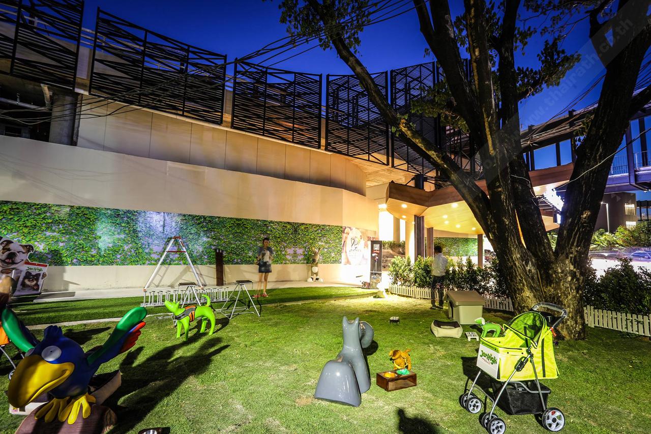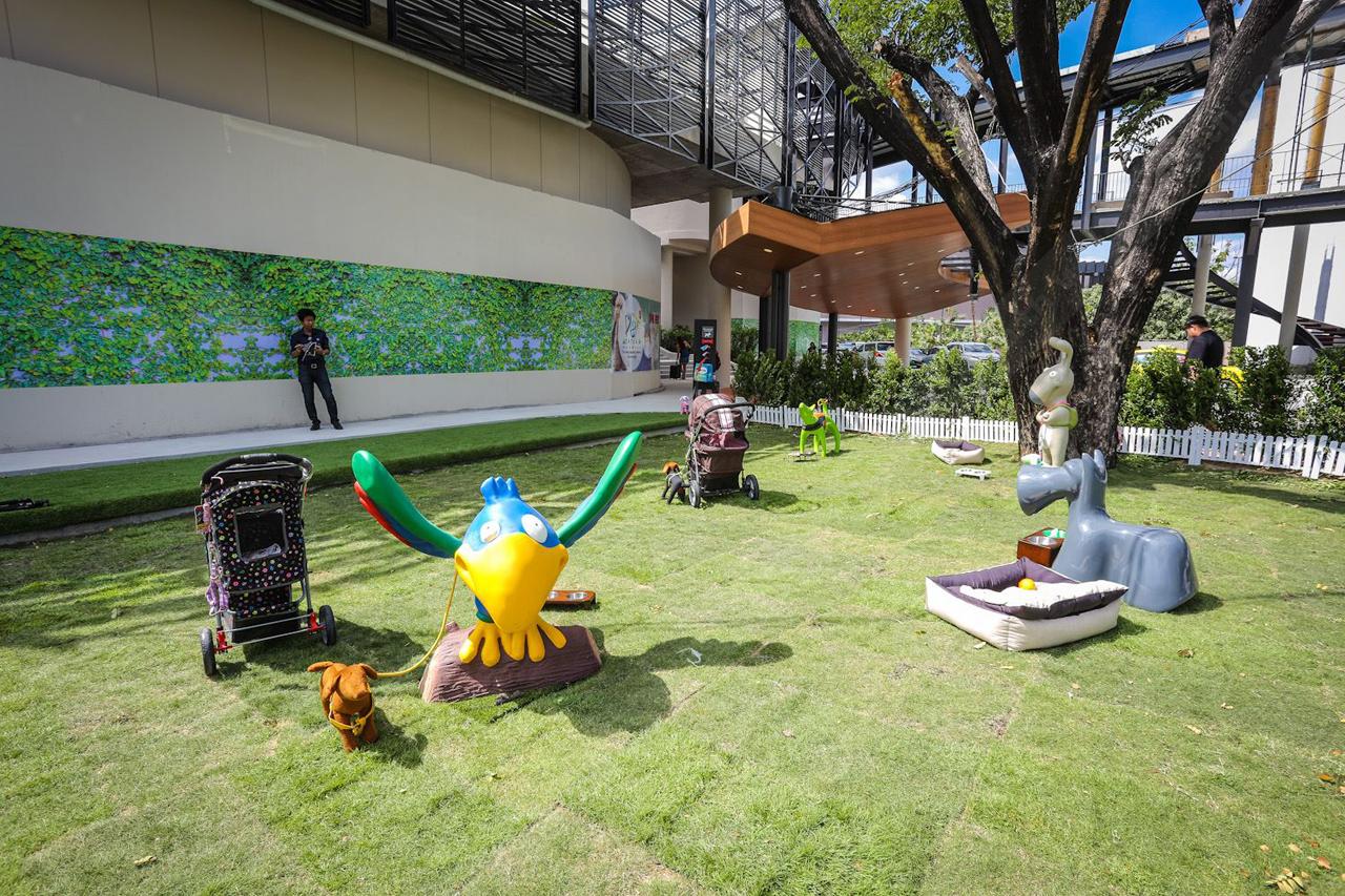หากคุณกังวลใจที่ต้องปล่อยสัตว์เลี้ยง หรือน้องหมาอยู่บ้านตามลำพัง กลัวมันจะเหงาหงอยเวลาที่คุณไม่อยู่ คุณก็พามาที่นี่ด้วยเลยสิ! เพราะที่นี่เขามีโซนสนามหญ้าขนาดย่อมสำหรับให้น้องหมาของคุณมาวิ่งเล่นโดยเฉพาะ มีพร็อพมากมายให้คุณได้ถ่ายรูปน้องหมาน่ารักๆ (ของคุณ) ขณะที่มันกำลังสนุกเพลินกับสถานที่ และเพื่อนใหม่ๆ แถมยังมีร้าน pet cafe ที่ขายของสารพัดสิ่งอย่างสำหรับน้องหมา ไม่ว่าจะเป็นอาหาร เบาะนอน ของเล่น น้ำยาทำความสะอาดต่างๆ หรืออุปกรณ์อาบน้ำ ตลอดจน pet grooming ที่คุณสามารถพาน้องหมามาตัดแต่งขนให้สวยหล่อปิ๊ง หรือจะเป็นแนวเท่ เก๋ๆ ก็ไม่ว่ากัน … มาที่นี่คุณตัดปัญหาเรื่องพาสัตว์เลี้ยงเข้าห้างฯ ไปได้เลย ซึ่งห้างฯ อื่น อาจจะพามาเดินเล่นแบบนี้ไม่ได้นะเออ !