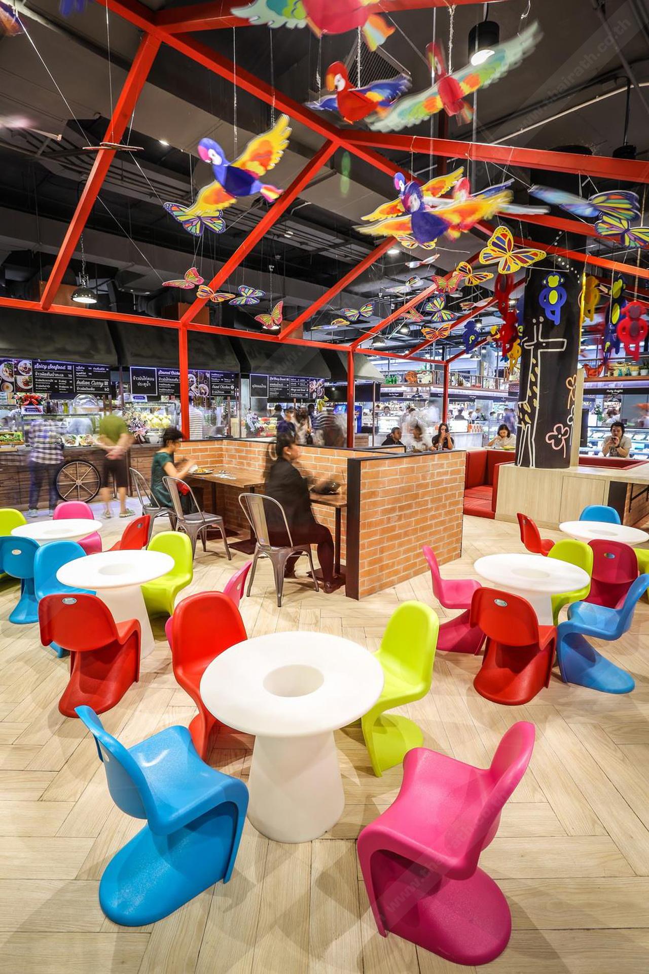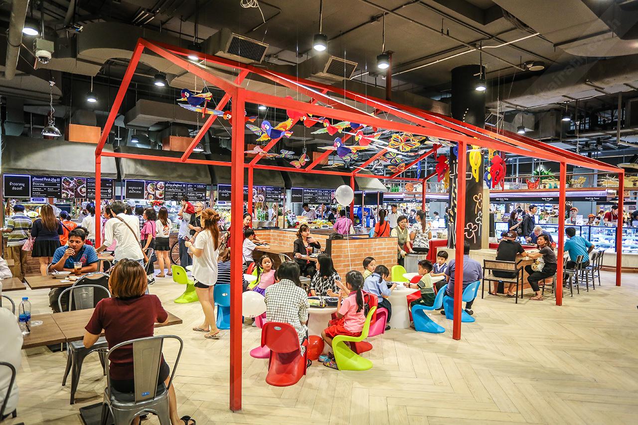 อาจดูแปลกๆ ตาสำหรับใครหลายคนเลยทีเดียว เพราะศูนย์การค้าที่นี่ได้แบ่งโซนที่นั่งทานอาหารไว้สำหรับเด็กๆ ด้วย เพื่อให้เด็กๆ ทานง่าย และสะดวกมากขึ้น โดยทำเป็นเหมือนโรงอาหารเล็กๆ สำหรับเด็ก มีเก้าอี้หลากสีสันวางล่อตาล่อใจให้เลือกนั่ง (ในขณะที่ศูนย์การค้าที่อื่นจะจัดอยู่ในโซนเดียวกันหมด ซึ่งเด็กๆ อาจจะนั่งไม่ถนัด หรือไม่สะดวกเวลาทาน) โซนนี้ผู้ใหญ่สามารถไปนั่งทาน ดูแลเด็กๆ ได้ด้วย มันให้ความรู้สึกเหมือนกลับไปเป็นเด็กอีกครั้งเลยล่ะ …