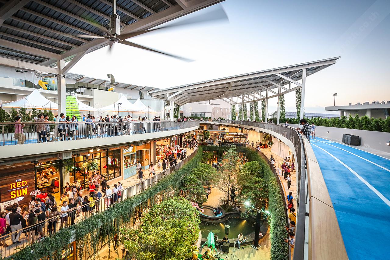 อีกหนึ่งไฮไลต์ของห้างฯ ที่เอาใจคนรักสุขภาพโดยเฉพาะ มันจัดเป็นลู่วิ่งบนดาดฟ้าที่แรกของศูนย์การค้าในประเทศไทย ซึ่งได้เนรมิตพื้นที่บนดาดฟ้าเป็น Rooftop Jogging Track ขนาดใหญ่ (ครึ่งหนึ่งของสนามกีฬาโอลิมปิก) ที่มีความยาวถึง 200 เมตร โดยลู่วิ่งนั้นแบ่งไว้เป็น 3 ช่องด้วยกัน คือ Walking Jogging และ Running ให้คุณได้เลือกออกกำลังกายกันเบาๆ ไปจนถึงฟิตเรียกเหงื่อหนักๆ อีกทั้งคุณยังชิลเพลินๆ ไปกับบรรยากาศยามพระอาทิตย์ขึ้น และยามพระอาทิตย์ลับขอบฟ้าสุดประทับใจ
