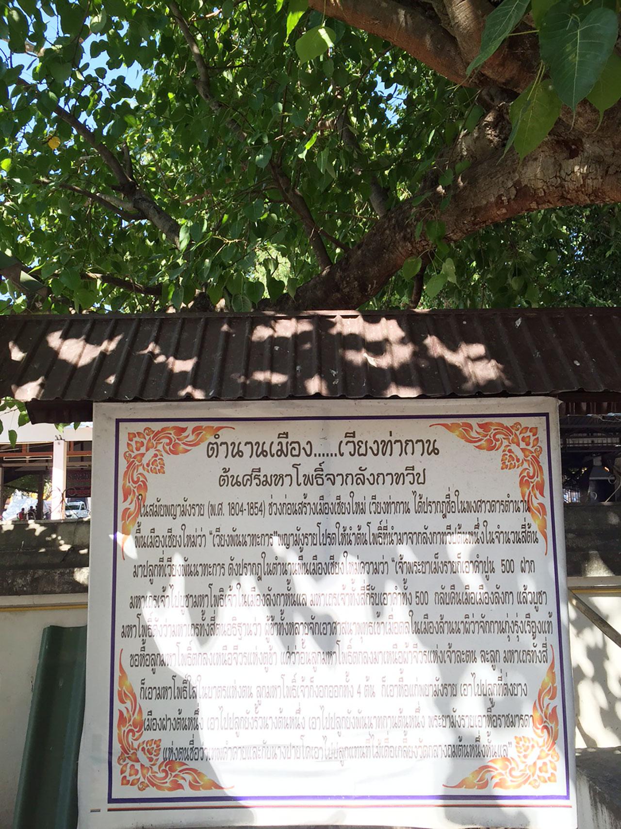 มองไปรอบๆ บริเวณวัดจะเห็นต้นศรีมหาโพธิ์จากศรีลังกา ที่ให้ร่มเงาช่วยคลายร้อนไปได้มากทีเดียว แม้ว่าจะอยู่ท่ามกลางแสงแดดแผดเผา สำหรับต้นศรีมหาโพธิ์ที่นำมาจากศรีลังกา นำมาปลูก 4 เมืองเท่านั้น คือ เชียงใหม่ เวียงกุมกาม เวียงผาง และเวียงท่ากาน