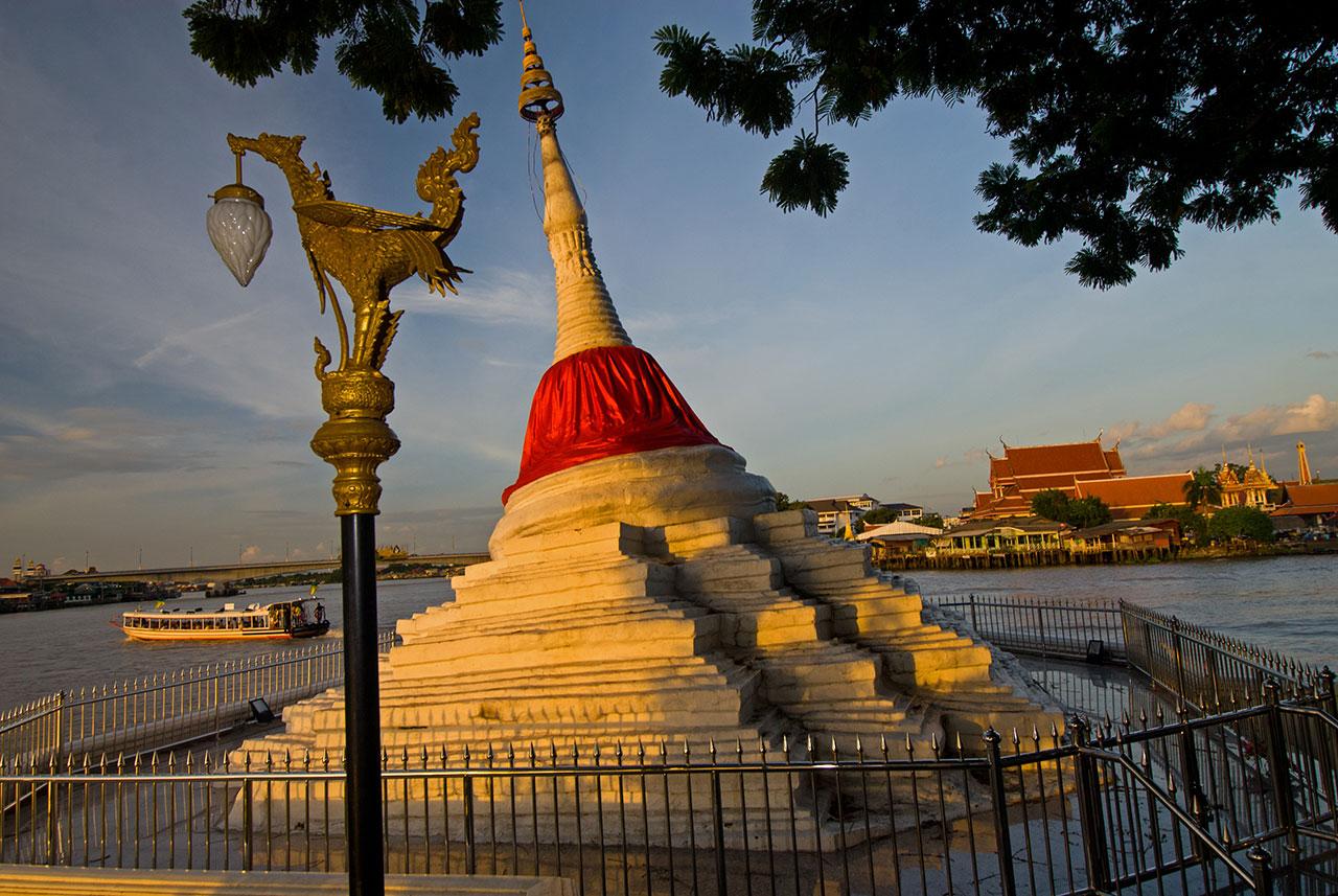 นั่งเรือไปขึ้นเกาะเกร็ดที่วัดปรมัยยิกาวาส พอมาถึงวัดก็จะพบกับแลนด์มาร์คที่โดดเด่นที่สุดของเกาะเกร็ด นั่นคือ เจดีย์มุเตา บ้างก็เรียกว่า พระมหารามัญเจดีย์ เนื่องจากเป็นเจดีย์ทรงรามัญที่สร้างขึ้นในสมัย ร.5 องค์เจดีย์มีรูปทรงแปลก เพราะเอียงทรุดลงไป 1 ข้าง