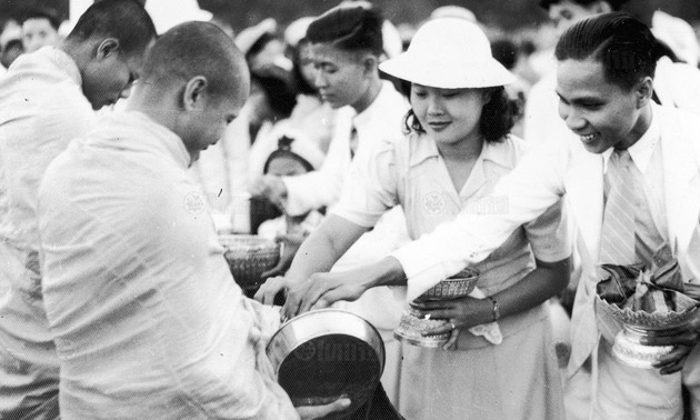 วันขึ้นปีใหม่ 1 มกราคม พ.ศ.2486 คนไทยร่วมกันทำบุญตักบาตรที่ท้องสนามหลวง