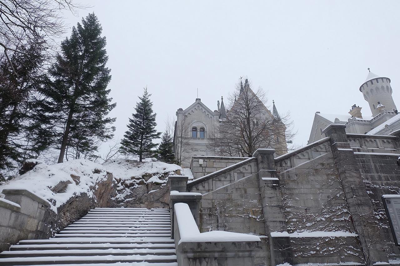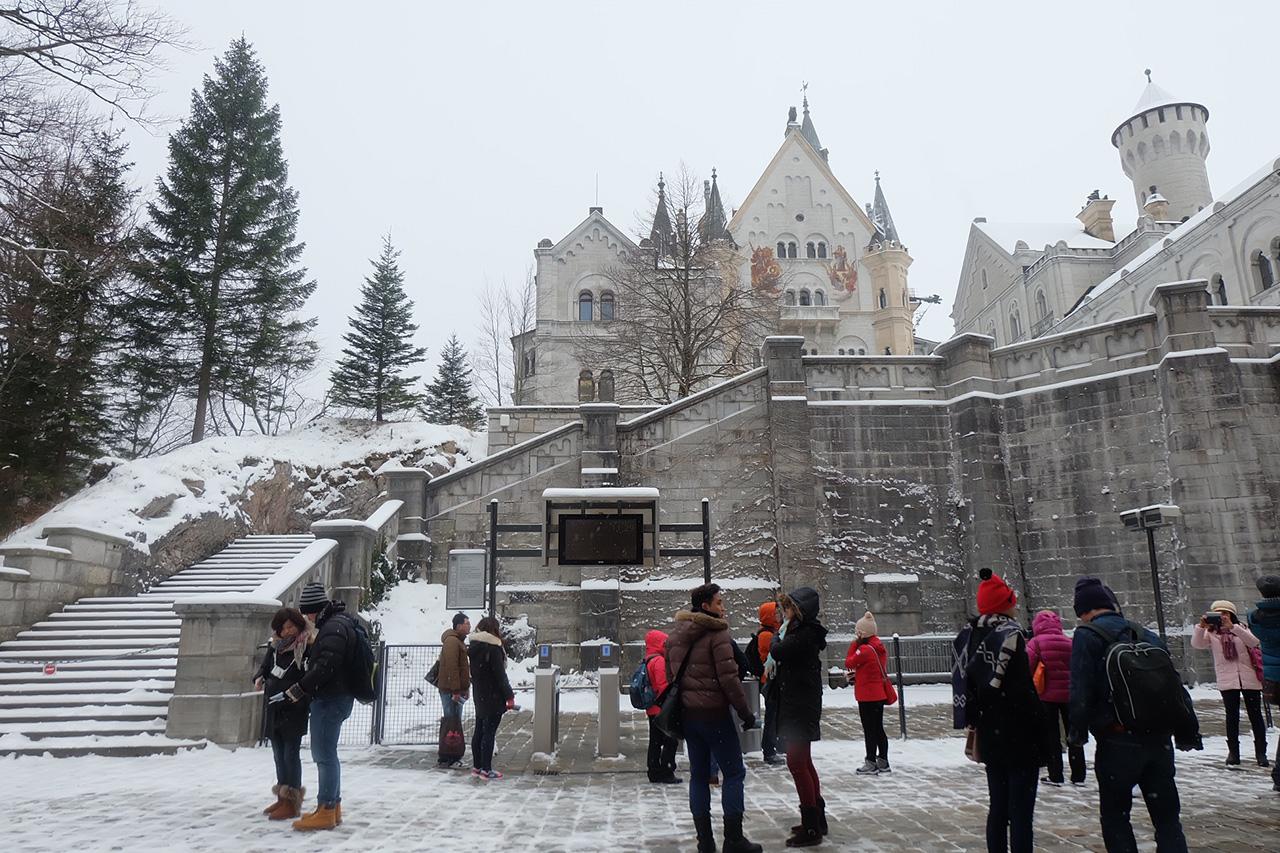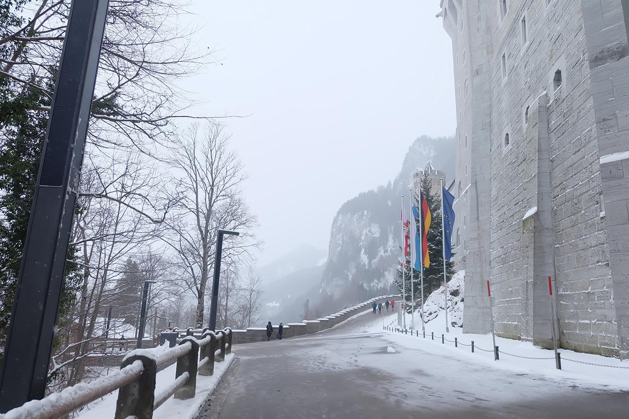 9. เมื่อถึงตัวปราสาท แทบจะลืมความหนาวเย็นไปเลยล่ะ เพราะตื่นเต้นกับความอลังการของปราสาทนอยชวานชไตน์ที่ถูกปกคลุมด้วยหิมะสีขาวบริสุทธิ์
