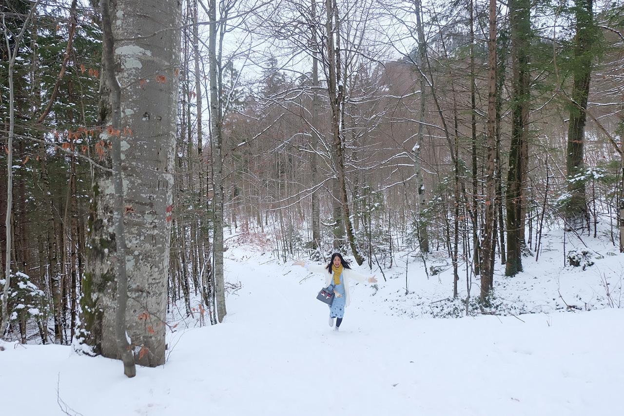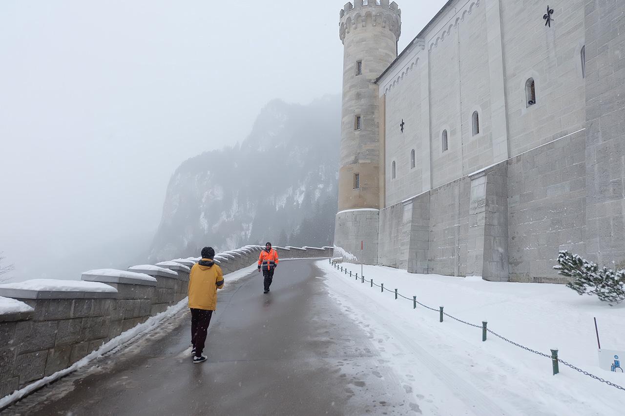 8. ด้วยความที่อยากขึ้นไปสัมผัสความโรแมนติกของปราสาทแห่งนี้ จึงกลั้นใจสู้กับพายุหิมะที่พัดมากระทบผิวหน้า เดินจากเชิงเขาสู่ปราสาท ระยะทางเกือบ 2 กิโลเมตร