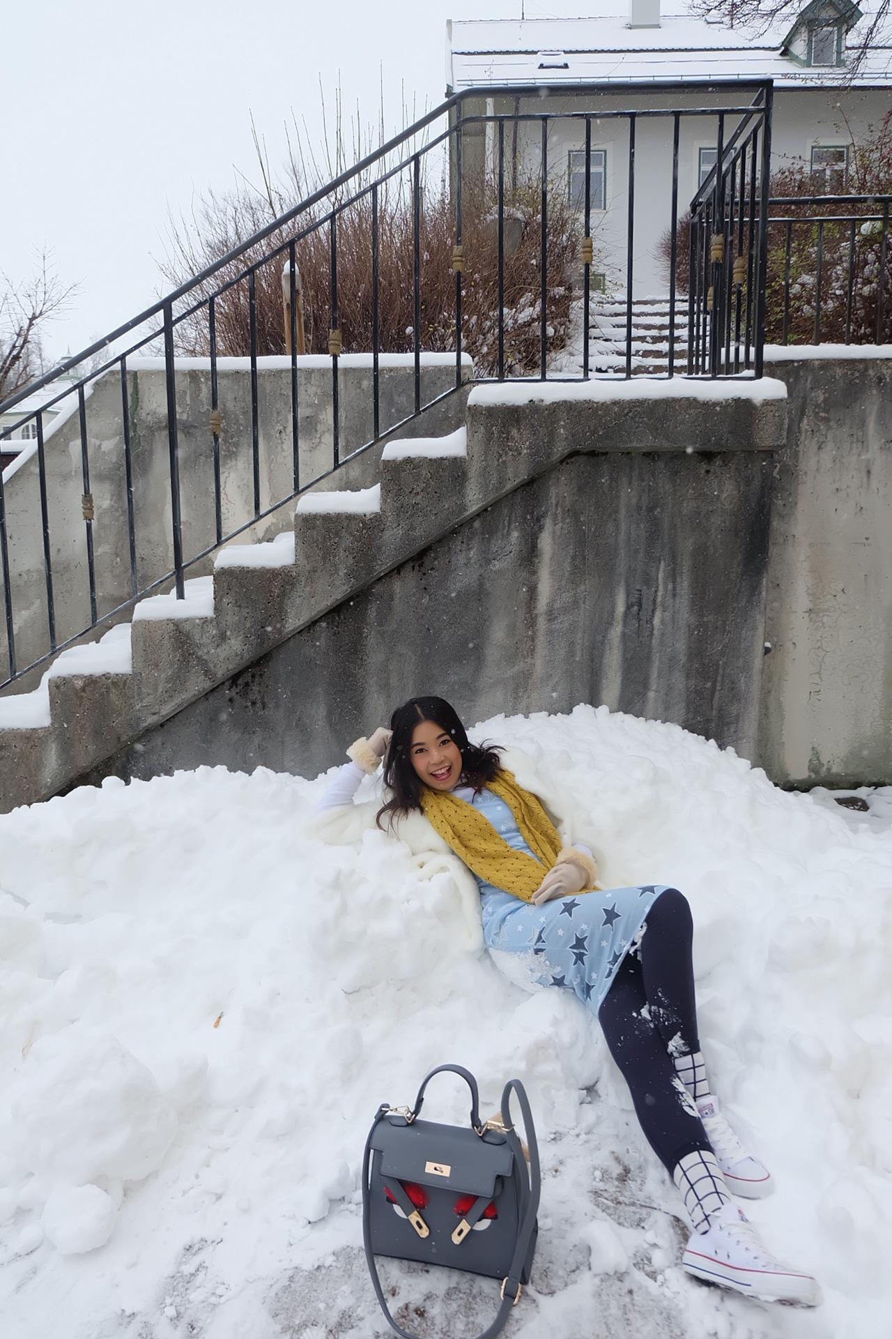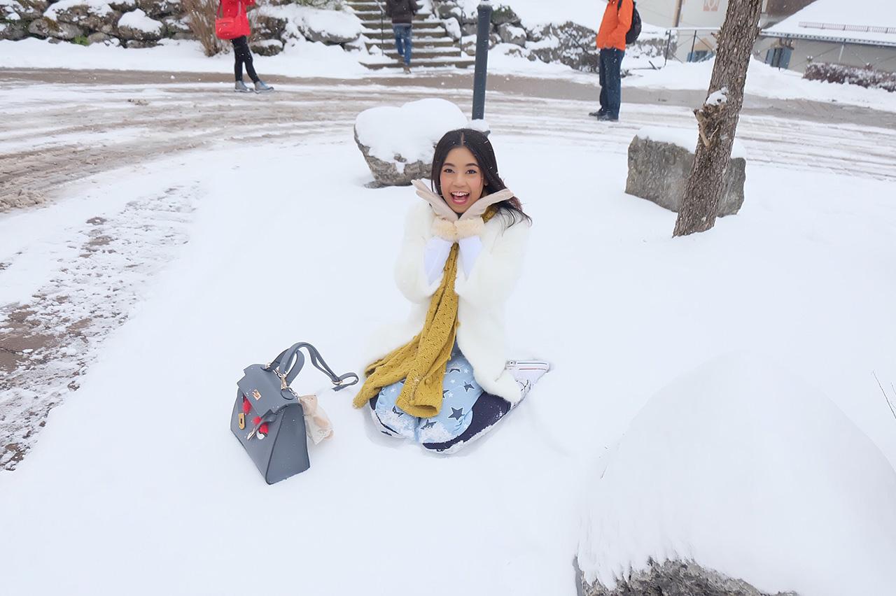 5. ครั้งแรกที่ได้สัมผัสหิมะ ขอลงไปนอนแช่เกล็ดน้ำแข็งที่หนาวเย็นสักหน่อย ว่าจะหนาวแค่ไหน (อิอิ) เมื่อมองไปรอบๆ ตัว เห็นแต่สีขาวโพลนทอดยาวราวกับโลกสีขาว งดงามจนแทบไม่อยากละสายตา สองเท้าค่อยๆ เดินขึ้นเขา ย่ำหิมะจนพื้นรองเท้าเปียกชุ่ม แทบจะก้าวขาไม่ออกเพราะหนาวมาก