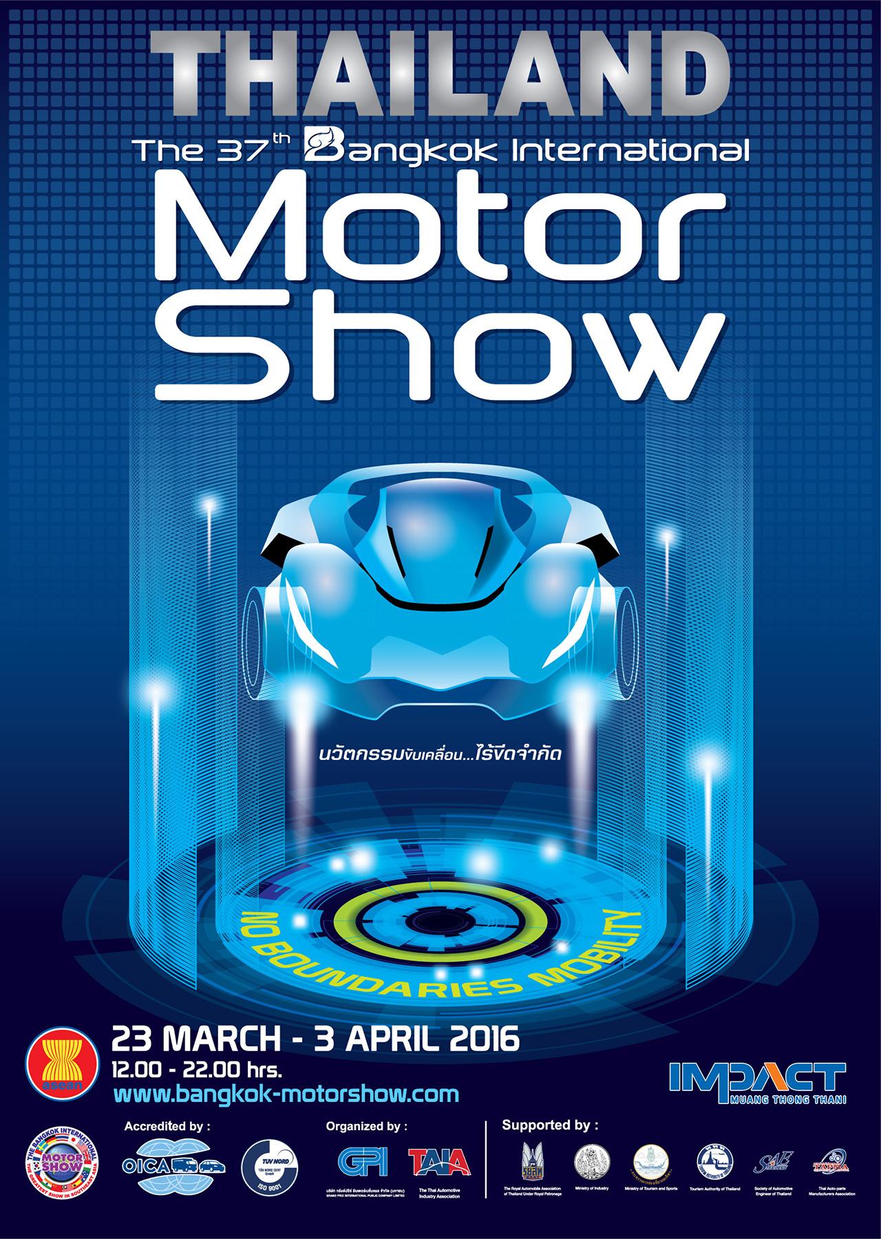 วันที่ 23 มี.ค.-3 เม.ย. 2559 ชวนคนรักรถไปเจอกันในงาน "บางกอก อินเตอร์เนชั่นแนล มอเตอร์โชว์ ครั้งที่ 37" ภายใต้แนวคิด "NO BOUNDARIES MOBILITY : นวัตกรรมขับเคลื่อน...ไร้ขีดจำกัด" ณ อาคารชาเลนเจอร์ 1-3 อิมแพ็ก เมืองทองธานี ภายในงานพบกับ บริษัทผู้ผลิตรถยนต์ 30 บริษัท, จักรยานยนต์ 10 บริษัท และอุปกรณ์ประดับยนต์ จากแบรนด์ชั้นนำ ร่วมออกบูธกว่า 175 บูธ ชมยนตรกรรมรุ่นใหม่ๆ ในพื้นที่การจัดงานมากที่สุดในเอเชีย กว่า 140,000 ตารางเมตร