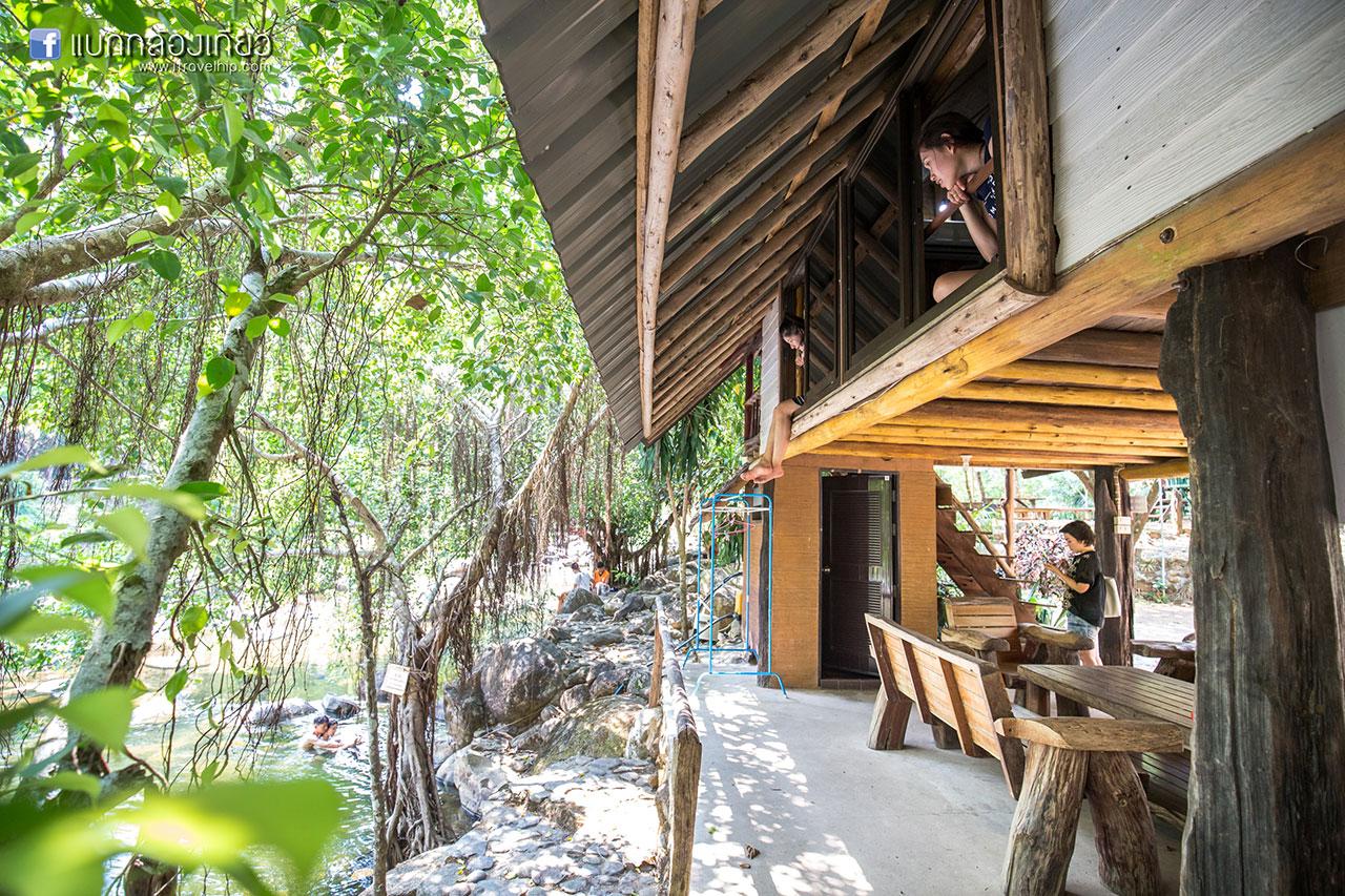 เมื่อมาถึงที่นี่บอกเลยว่าหายเหนื่อย เพราะบ้านพักปลูกอยู่ติดสวนผลไม้ติดกับน้ำตก ถ้าอยากเล่นน้ำตกแค่ก้าวลงบันไดเท่านั้น...ฟินเลย! ถึงจะอยู่ในป่าเขาแบบนี้เขาก็มี Wi-fi ให้โชว์รูปสวยๆ อวดเพื่อน