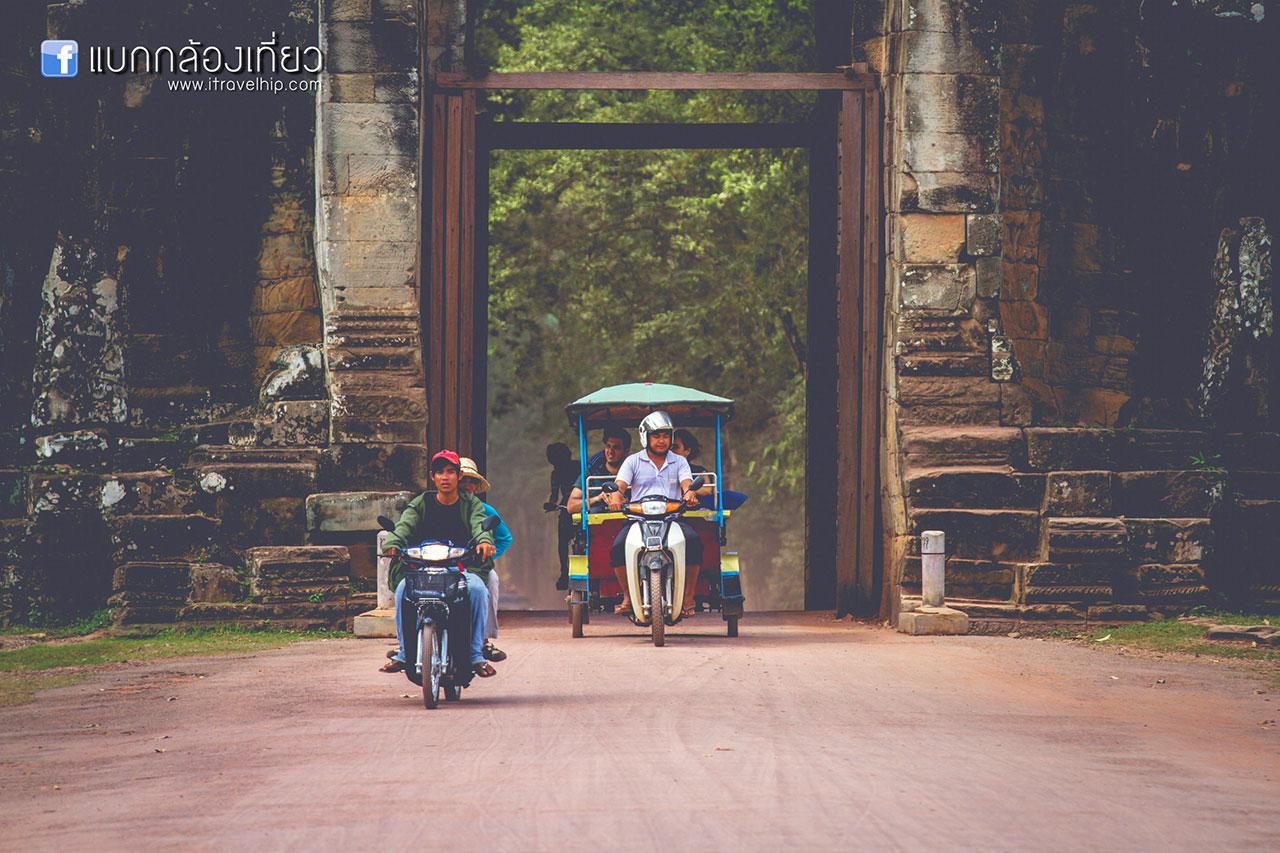 นอกจากนี้ไหนๆ ก็มาเยือนกัมพูชาแล้ว ผมแนะนำให้เที่ยวในตัวเมืองด้วยนะครับ ซึ่งมีทางเลือกให้เยอะมาก เริ่มกันตั้งแต่ เช่าจักรยานปั่นเที่ยวเอง จะปั่นรอบเล็ก ระยะทางประมาณ 17 กิโลเมตร ผ่าน Angkor Wat, Phnom Bakheng, Baksei Chamkrong,  Angkor Thom และ Bayon ถนนส่วนใหญ่เป็นลูกรังที่ฝุ่นเยอะ สภาพอากาศช่วงกลางวันร้อนมาก และไม่ค่อยมีที่ให้หลบแดดครับ เดี๋ยวจะเที่ยวไม่สนุกและคุมเวลายาก หรือจะลองใช้บริการ รถ Tuk Tuk เป็นวิธีการเดินทางที่นิยมครับ มีหลังคากันฝนได้ ราคาถูกกว่า Taxi และหาได้ง่ายทั่วเมืองครับ สุดท้ายคือ Taxi เป็นวิธีการเดินทางที่สะดวกสบายที่สุด ทำเวลาได้ดี ไม่ร้อน แต่ราคาจะแพงที่สุด