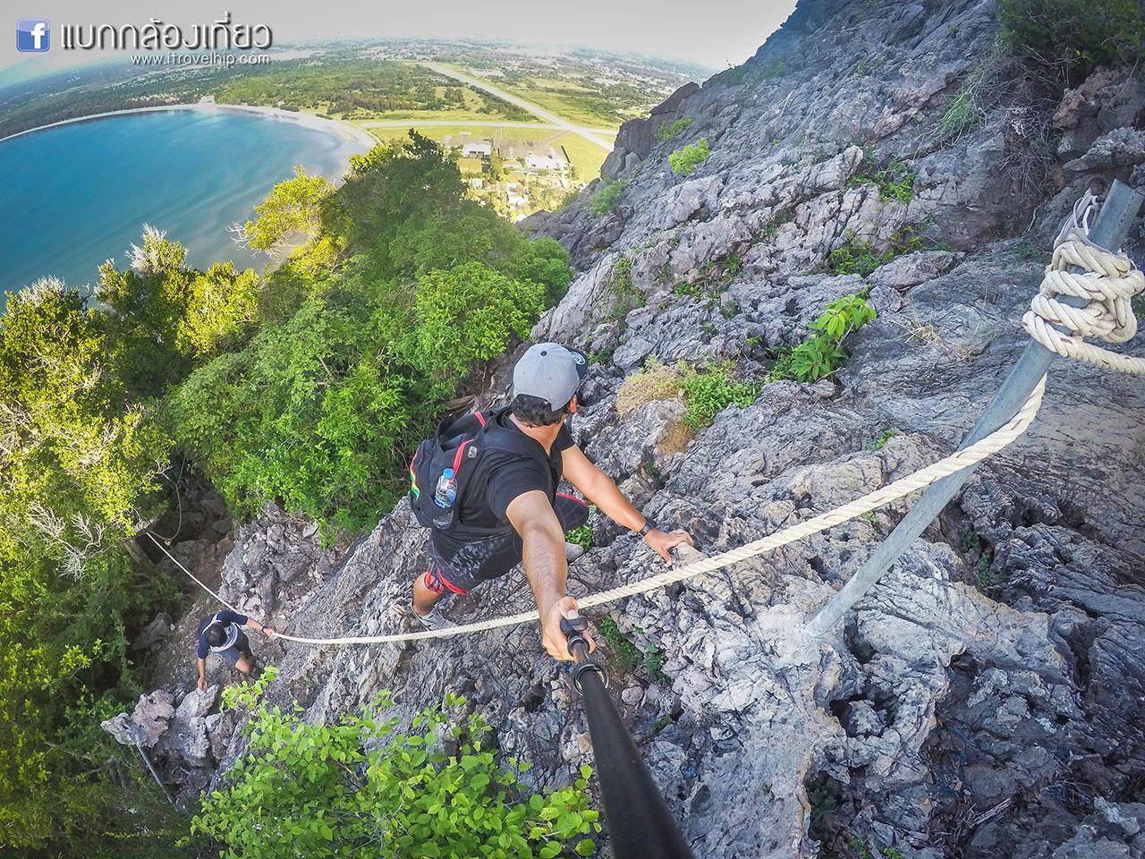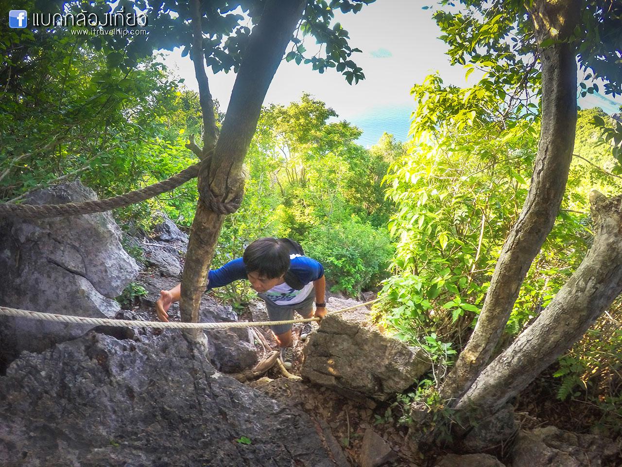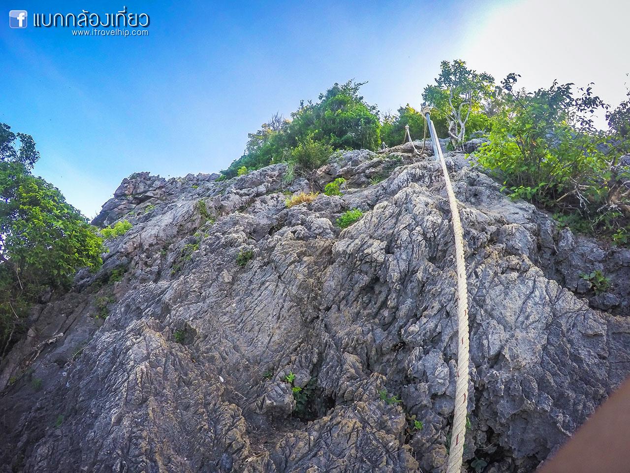 พอช่วงสุดท้ายจะเป็นหินปูน เราต้องใช้สองมือในการจับบางช่วง ช่วงสุดท้ายทางจะชันหน่อย ตรงนี้ต้องใช้ความระมัดระวังด้วยครับ รวมแล้วใช้เวลาเดินขึ้นประมาณ 1-2 ชม. แล้วแต่สภาพร่างกายของแต่ละคนครับ