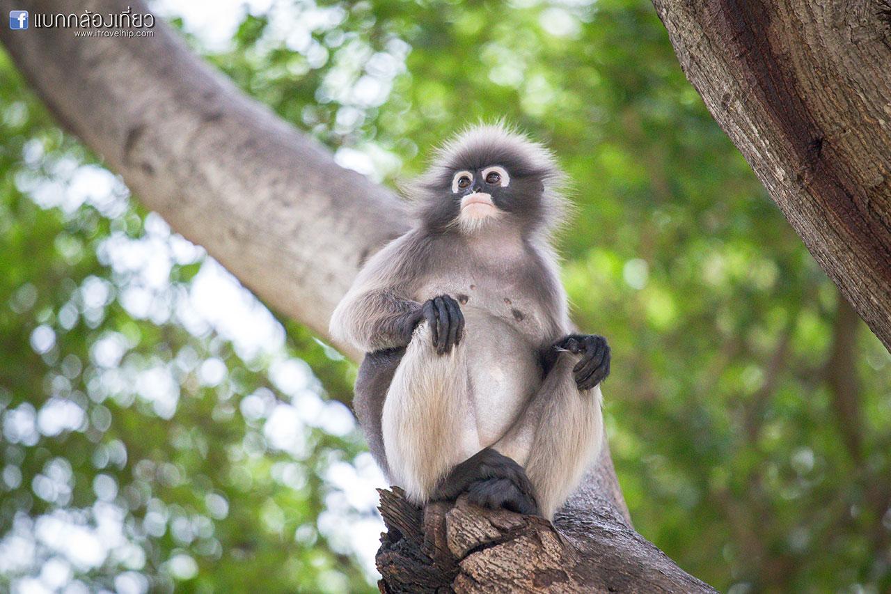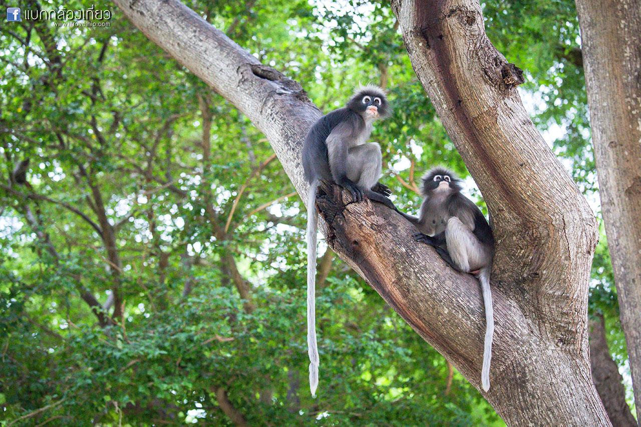 บริเวณเชิงเขามีศาลเจ้าพ่อเขาล้อมหมวก และเป็นที่ตั้งของเขตอนุรักษ์พันธุ์ค่างแว่น พวกมันค่อนข้างเป็นมิตร อาจจะเพราะมันมีจำนวนไม่มากนัก และได้รับการดูแลอย่างดี ลูกค่างแว่นตอนเกิดจะมีขนเป็นสีทองน่ารักมากๆ นักท่องเที่ยวสามารถให้อาหารค่างแว่นได้ โดยอาหารที่มีขายคือถั่วลิสงคั่ว กระถิน และผลไม้บางชนิด แต่ห้ามนำถั่วฝักยาว แตงโม และแตงกวาให้ค่างแว่น เนื่องจากมียาฆ่าแมลงตกค้าง เพราะเคยเกิดกรณีตายยกฝูงมาแล้ว
