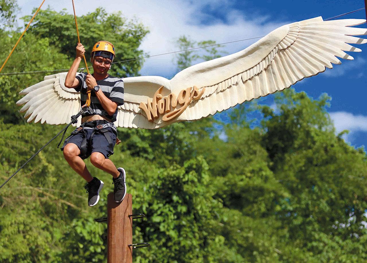 ถือได้ว่าเป็นสถานที่ท่องเที่ยวมิติใหม่ของอำเภอสวนผึ้ง ได้ยินมาว่า เครื่องเล่นของที่นี่เขาการันตีว่าเสียวเป็นหมู่คณะ มีสถานีสร้างความตื่นเต้นถึง 9 ด่านด้วยกัน เช่น เมืองผจญภัย หน้าผาจำลองสูง 10 เมตร (4 เส้นทาง) ด่านนี้การันตีว่าไม่ยาก สามารถไต่ขึ้นหน้าผาได้พร้อมๆ กันเป็นหมู่คณะ จนที่นี่ได้รับเลือกให้จัดแข่งขันแรลลี่ปีนหน้าผาที่แรก และที่เดียวในประเทศไทย ต่อมาคือ ชิงช้ายักษ์ (Sky Coaster) สูงถึง 10 เมตร มีเพียงเครื่องเดียวในประเทศไทย พูดเลยว่าเสียวสุดเพราะเจ้าเครื่องเล่นตัวนี้จะเหวี่ยงคุณขึ้นสู่ท้องฟ้าด้วยเชือกที่ผูกตรงเอวเท่านั้น ฉันนี่กรี๊ดสุดพลังปอด แต่ก็รู้สึกดีสุดๆ เหมือนกับกำลังเหาะอยู่ ทีมงานบอกว่ากิจกรรมนี้ถูกคัดเลือกให้คู่บ่าวสาวขึ้นชิงช้ายักษ์เพื่อพิสูจน์รักแท้ในงาน “Thailand Adventure Wedding 2016” อีกด้วย