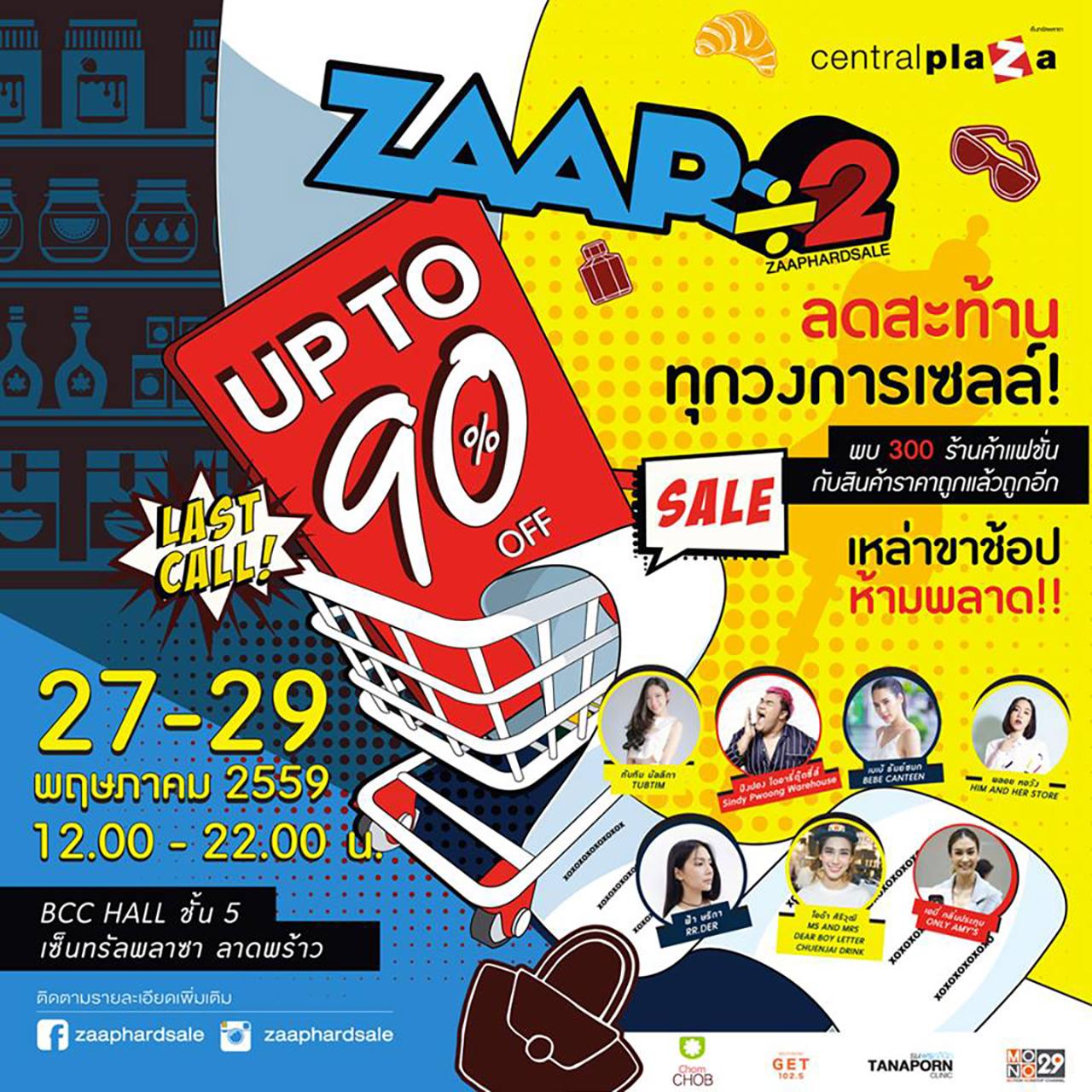 วันนี้ - 29 พ.ค. 2559 มาพบกับมหกรรมลดราคาสะท้านทุกวงการ "ZAAP HARD SALE" BCC HALL ชั้น 5 ศูนย์การค้าเซ็นทรัลพลาซา ลาดพร้าว ภายในงานพบกับ ร้านค้าแฟชั่นออนไลน์ กว่า 300 ร้านค้าที่นำสินค้ามาลดราคาถึง 50-90% แค่สุดสัปดาห์นี้ 3 วันเท่านั้น