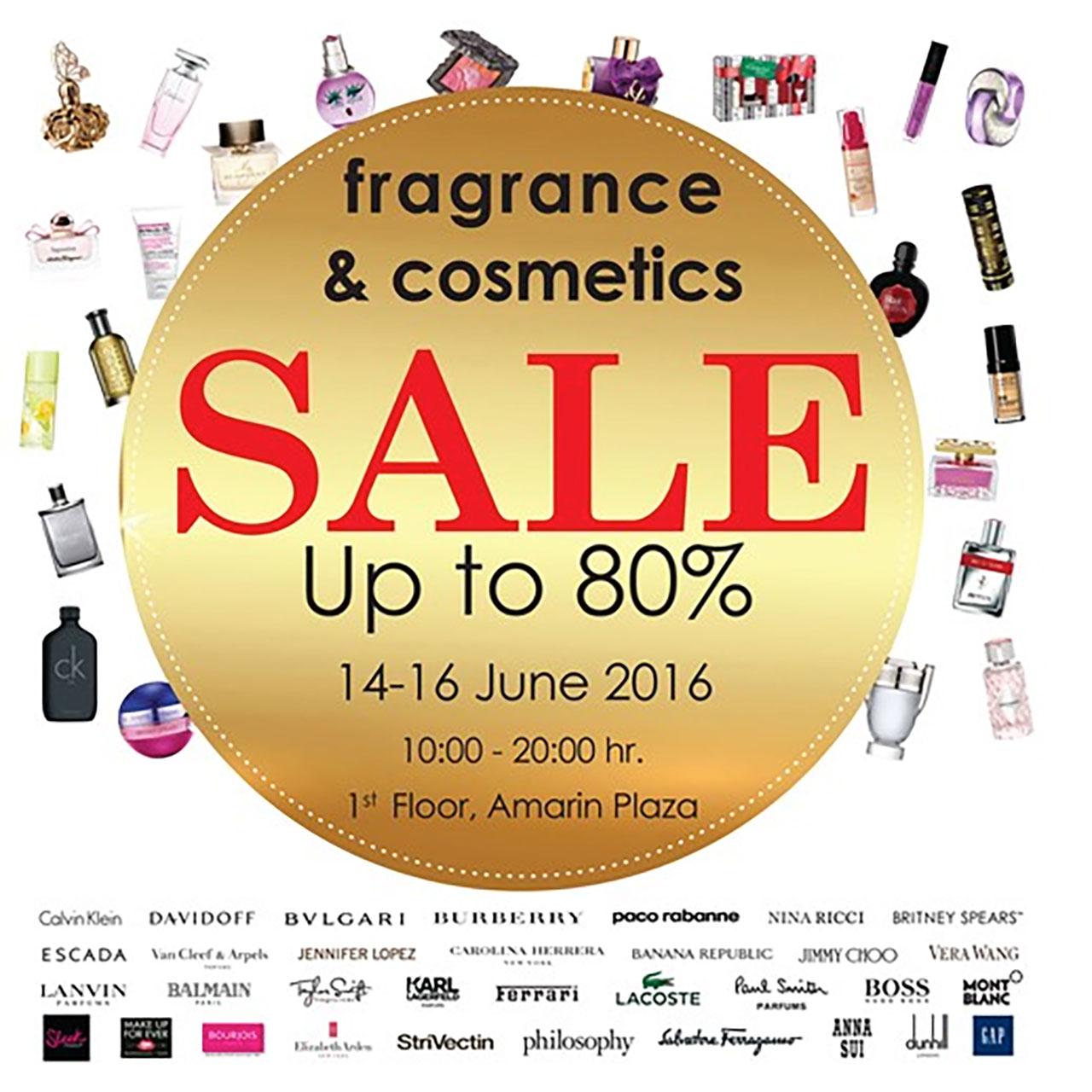 วันนี้-16 มิ.ย. 2559 ชวนสาวๆ มาช็อปสินค้าความงามในงาน "FRAGRANCE & COSMETICS WAREHOUSE SALE UP TO 80%" ณ ลานชั้น 1 ศูนย์การค้าอัมรินทร์พลาซ่า ภายในงานพบกับน้ำหอมแท้แบรนด์ดังจากต่างประเทศ ขนมาลดจัดหนักมสูงสุด 80% เช่น CK , DAVIDOFF, BVLGARI, PHILOSOPHY, STRIVECTIN, ELIZABETH ARDEN, LANVIN, SLEEK, MONTBLANC, JIMMI CHOO, HUGO BOSS, ANNA SUI และอื่นๆ อีกมากมาย