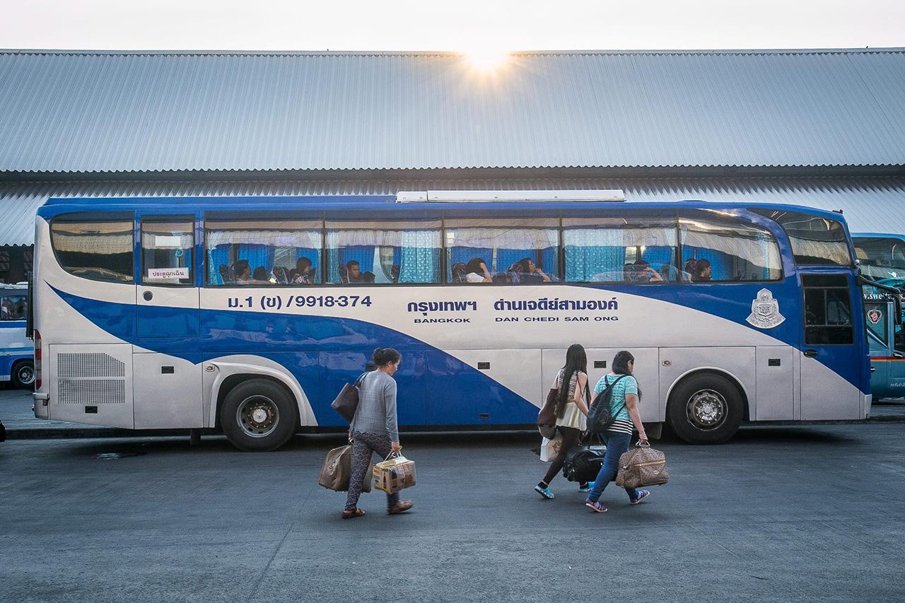 Note : ควรเลือกบริษัทรถทัวร์ที่เราไว้ใจ จองตั๋วออนไลน์ผ่านเว็บไซต์ของบริษัทนั้นๆ โดยตรง สำหรับบริษัทรถทัวร์ที่เราใช้เป็นประจำ คือ บริษัทนครชัยแอร์ และ บริษัทสมบัติทัวร์ สองแห่งนี้จองตั๋วได้ง่ายๆ ผ่านระบบออนไลน์ หรือคอลเซ็นเตอร์ พนักงานบริการดี รวดเร็ว ใส่ใจรายละเอียดของผู้โดยสารดีมาก ที่สำคัญ ชำระเงินได้หลากหลายช่องทาง ผ่านร้านสะดวกซื้อ ผ่านบัตรเครดิต ผ่านเคาน์เตอร์ธนาคาร หรือตู้เอทีเอ็มก็ได้