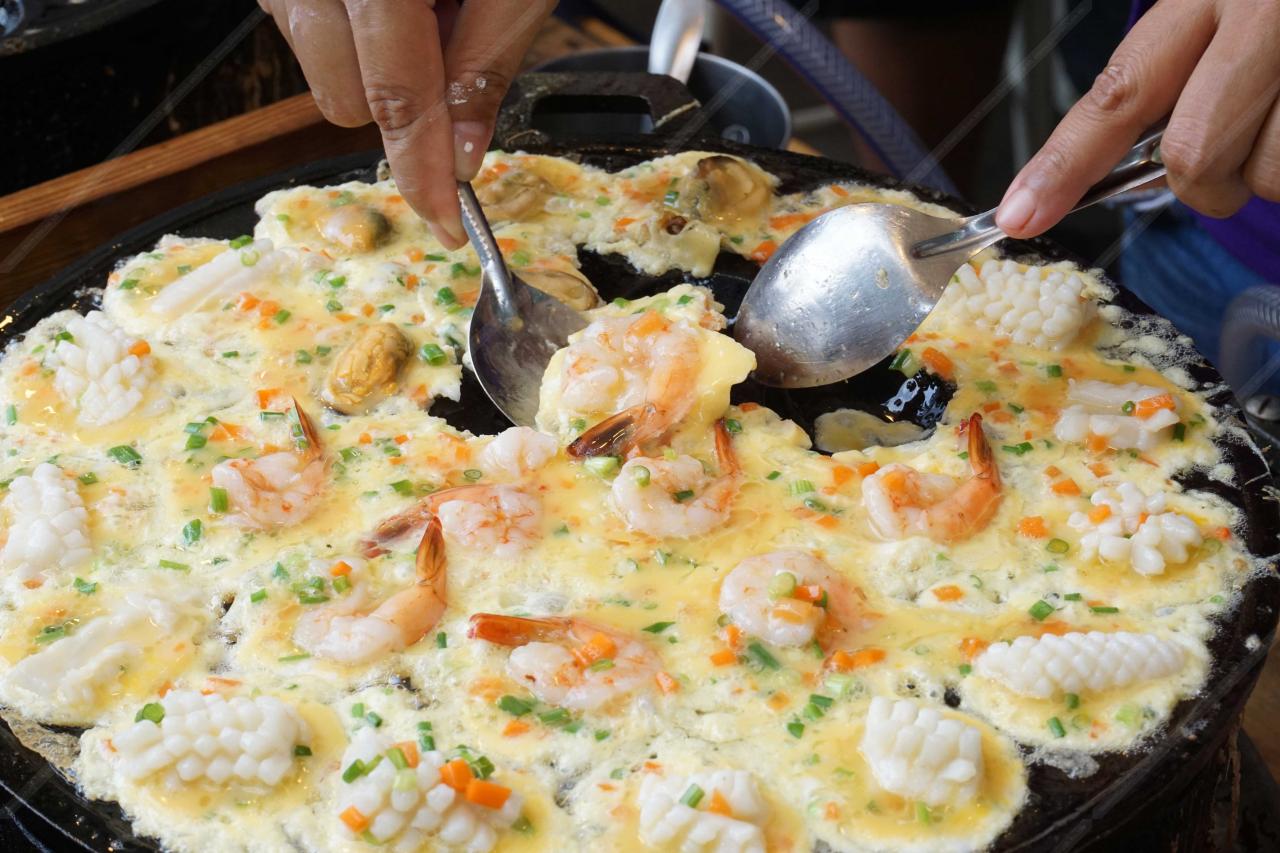 อันนี้เขาทำเป็นเหมือนหอยทอดที่มาในไซส์มินิ แต่คือไม่ได้มีแค่หอยทอดไง ขนมาหมดทั้งกุ้ง หมึก หอย ชิ้นใหญ่ๆ เต็มคำ อร่อยฟิน