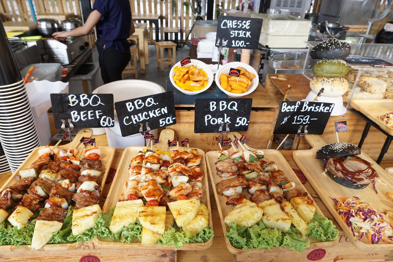 ชื่อก็บอกอยู่แล้วว่าขายเบอร์เกอร์ และเมนูบาร์บีคิวต่างๆ เริ่มจากเบอร์เกอร์หน้าตาดี ขนมปังมีให้เลือกหลายชนิด มีทั้งขนมปังแบบออริจินอล แบบชาเขียว และแบบชาโคล ว้าว! นอกจากนี้ในส่วนของเมนูปิ้งย่างนั้น ก็น่าทานไม่แพ้กัน มีทั้งบาร์บีคิวไก่ บาร์บีคิวเนื้อ บาร์บีคิวหมู และชีสสติ๊ก