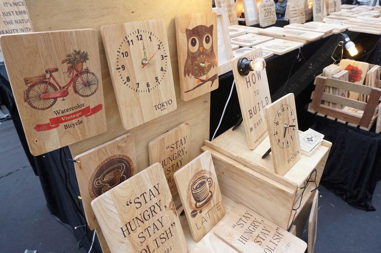 เป็นร้านใหญ่เหมือนกัน มองเห็นมาแต่ไกล ยิ่งพอเดินไปดูใกล้ๆ ยิ่งชอบอะ เป็นนาฬิกาตั้งโต๊ะ หรือจะใช้แขวนประดับก็ได้ เป็นนาฬิกางานไม้สไตล์แฮนด์เมด ที่มีหลากหลายรูปแบบให้เลือก บางชิ้นก็เป็นนาฬิกาอย่างเดียว แต่บางชิ้นเป็นทั้งนาฬิกาและโคมไฟไปในตัว เก๋ดี สนนราคาเริ่มต้นที่ 199-890 บาท แล้วแต่ขนาดและฟังก์ชั่นการใช้งาน