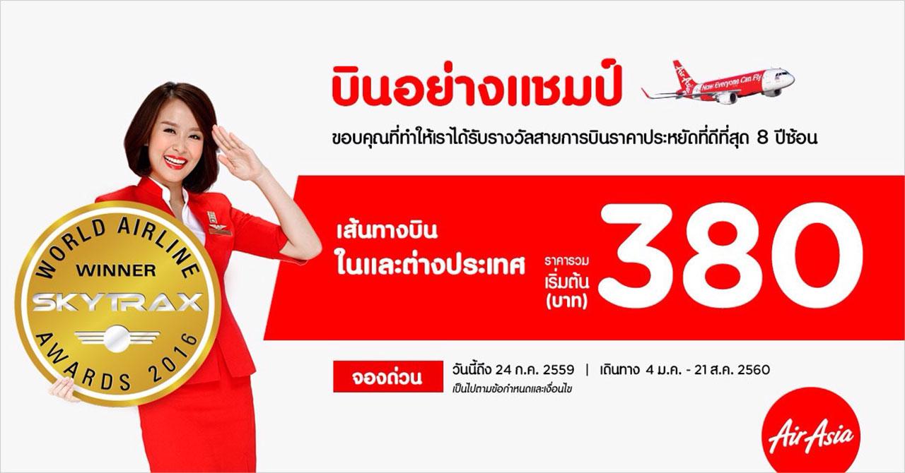 1. แอร์เอเชียฉลองแชมป์ ปล่อยโปรตั๋ว 380 บาท