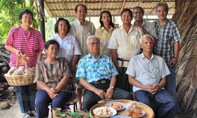 ผู้เขียนกับคุณชาตรี วาจีสัตย์ และน้องสาว รวมทั้งชาวสวนที่ช่วยกันทำน้ำตาล.