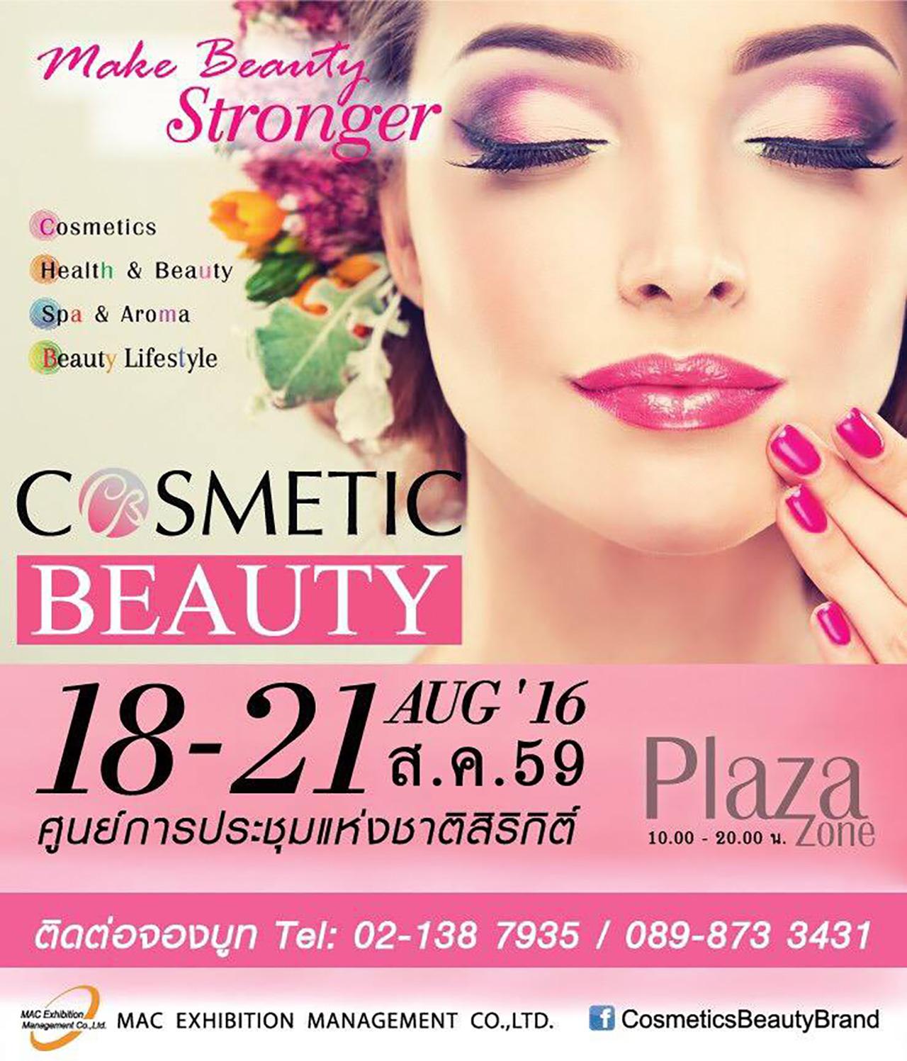 วันนี้-21 ส.ค. 2559 ชวนสาวๆ มาเพิ่มความสวย ช็อปไอเทมความงามในงาน "Cosmetics Beauty Brand" ณ โซน PLA Mrt ศูนย์การประชุมแห่งชาติสิริกิติ์ ภายในงานพบกับ สินค้าและบริการด้านสุขภาพและความงามแบบครบวงจร ได้แก่ Skincare, Makeup, น้ำหอม, อาหารเสริม มีเกร็ดเคล็ด(ไม่)ลับ และคำแนะนำดีๆ ในศาสตร์แห่งความงาม รวมถึงนวัตกรรม และเทคโนโลยีด้านสุขภาพ ทั้งจากคุณหมอ ผู้เชี่ยวชาญ สถาบันความงาม ศูนย์สุขภาพ เครื่องออกกำลังกาย สปา อาหารและเครื่องดื่มเพื่อสุขภาพ อุปกรณ์ประกอบอาหาร เป็นต้น