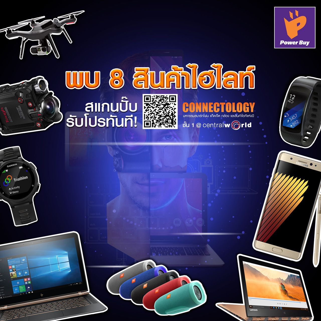 วันนี้-21 ส.ค. 2559 ชวนคนรักไอทีมาร่วมงาน "Power Buy Connectology" ณ ชั้น 1 ศูนย์การค้าเซ็นทรัลเวิลด์ ภายในงานพบกับ สมาร์ทโฟน แก็ดเจ็ต กล้อง สินค้าไอที นำเสนอสินค้าที่ครบทุกฟังก์ชั่นการใช้งานเพียงเครื่องเดียว พร้อมโปรโมชั่นพิเศษสุดคุ้ม ผ่านการสแกน QR Code รับส่วนลดและของแถมมากมาย ผ่อนสบายๆ ได้ 0% นาน 10 เดือน