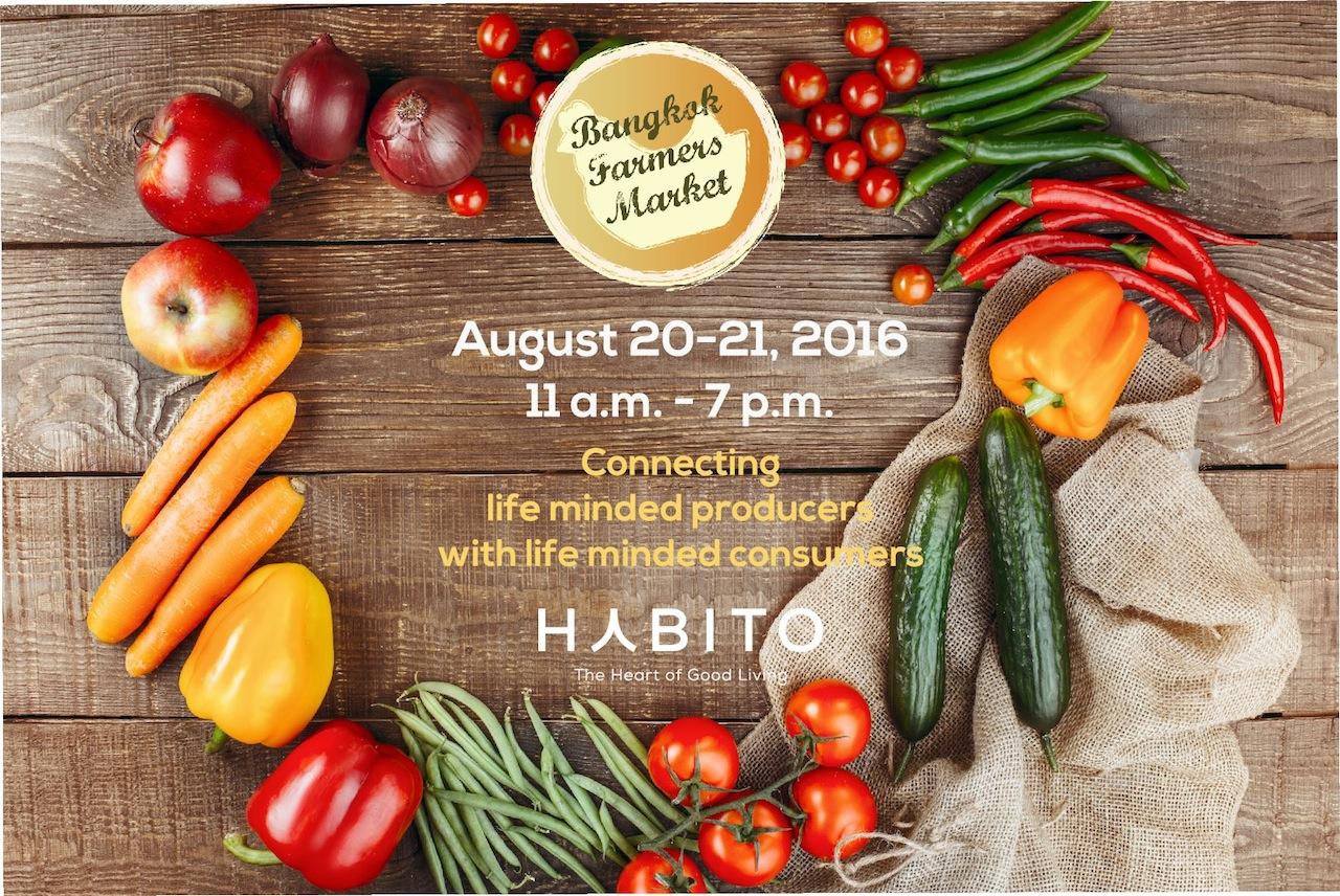วันที่ 20-21 ส.ค. 2559 ชวนคนรักอาหารสุขภาพมาเจอกันในงาน "Bangkok Farmers Market" ณ ลานกิจกรรมฮาบิโตะ มอลล์ สุขุมวิท77 ซอยอ่อนนุช 1/1 ภายในงานพบกับ ผลิตภัณฑ์ออร์แกนิคคุณภาพสดใหม่ ได้แก่ RAKTUM รักษ์ธรรมกลุ่มเกษตรกรวิถี ใส่ใจผู้บริโภคและสิ่งแวดล้อม อาหารทะเลสดจาก โครงการประมงพื้นบ้าน สัตว์น้ำอินทรีย์ และร้านค้าชื่อดังกว่า 40 ร้าน อาทิ Petit fouth, Rose bake, Guten, The hope, Mydayforu, Toiteevit, Vitatrade, The green geek, Relax corner, Ms.febs, Awa décor, Worm boy, Super pure, Go Organic และอีกมากมาย