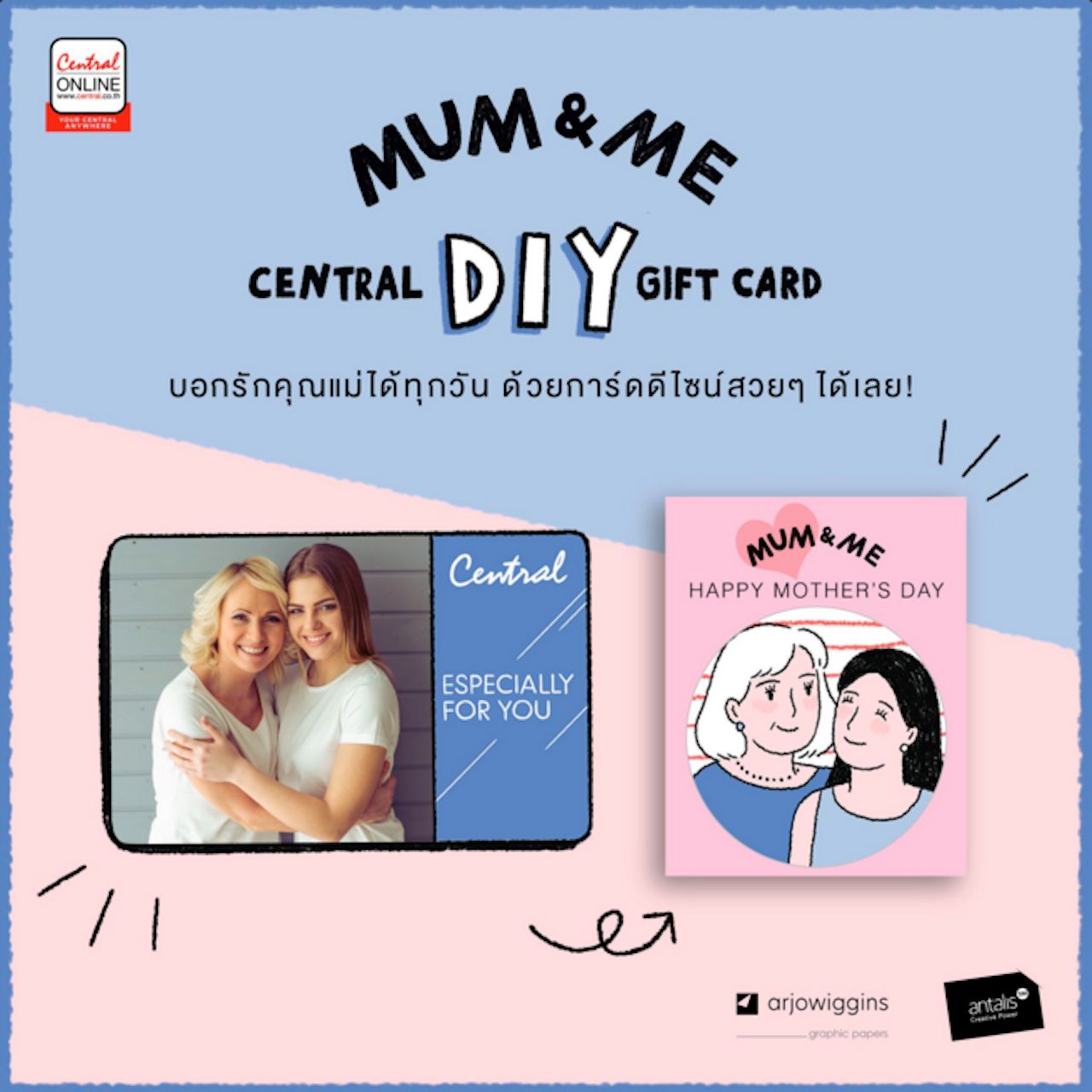 วันนี้-31 ส.ค. 2559 ชวนคู่แม่ลูกร่วมกิจกรรม "Gift Card DIY" ณ ห้างเซ็นทรัลพลาซ่าทุกสาขา ชวนส่งท้ายเทศกาลวันแม่ เดือนสิงหาคม กับกิจกรรมน่ารักๆ จากห้างเซ็นทรัล คุณลูกควงแขนคุณแม่มาแชร์รูปคู่ ทำบัตร Gift Card DIY ง่ายๆ เพียงใช้รูปคู่กับคุณแม่เป็นรูปหน้าบัตร (มูลค่า 3,000 บาทขึ้นไป) พร้อมรับฟรี รูปวาด portrait ขนาดโปสการ์ดดีไซน์สวย ที่มีชิ้นเดียวในโลก ดูรายละเอียดเพิ่มเติมได้ที่ www.central.co.th