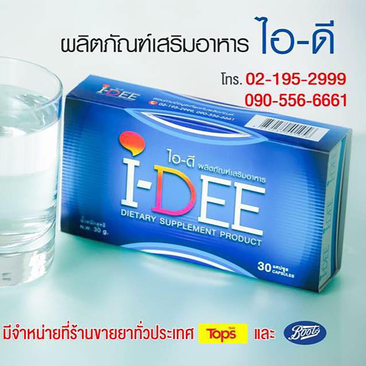 วันนี้ ชวนมาเพิ่มพลังสมองและสายตากับ “I-DEE ผลิตภัณฑ์เสริมอาหารเพื่อบำรุงสมองและสายตา” ณ ท็อปส์ มาร์เก็ต ทั้ง 85 สาขาทั่วประเทศ และผ่านเว็บไซต์ Lazada และตัวแทนจำหน่าย 300 แห่ง ทั่วประเทศ