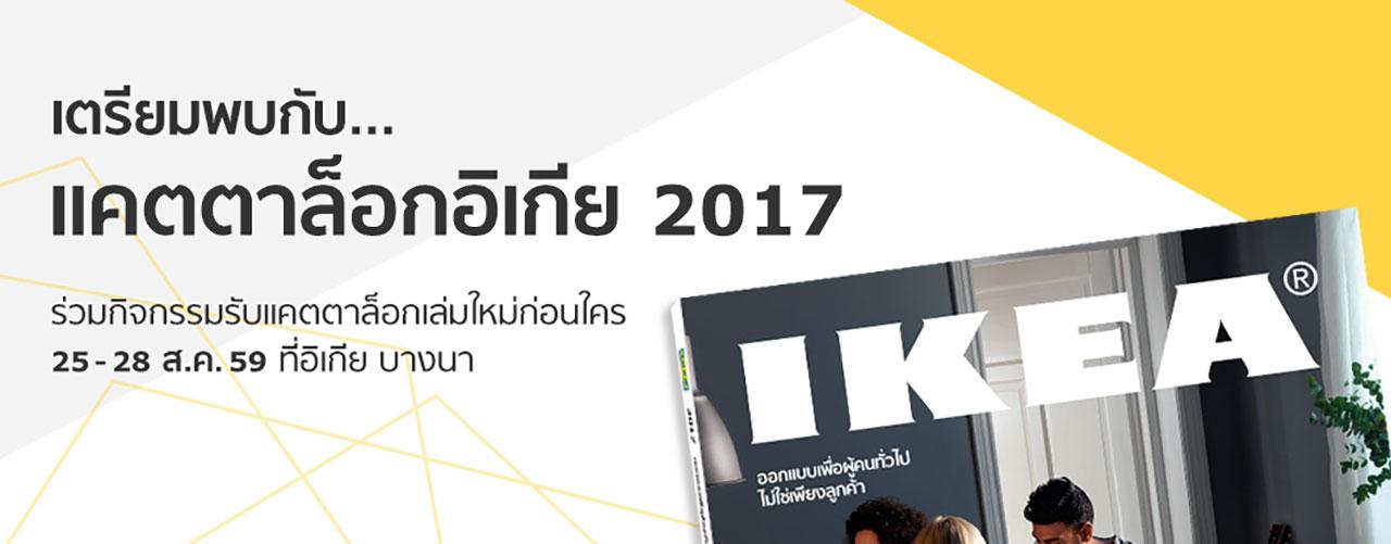 วันที่ 25 - 28 ส.ค. 2559 ชวนไปร่วมงานเปิดตัว “แคตตาล็อกอิเกีย 2017” ณ อิเกีย บางนา ชั้น G ภายในงานพบกับสารพัดไอเดียแต่งบ้านและบทความน่าสนใจมากมายที่จะช่วยเติมแรงบันดาลใจให้คุณ เวลา 10.00 - 20.00 น. สำหรับสมาชิก IKEA FAMILY แสดงบัตรเพื่อร่วมสนุกภายในงานพร้อมรับของที่ระลึกพิเศษ ลุ้นจับสลากรับรางวัลเฟอร์นิเจอร์และสินค้าตกแต่งบ้านมากมาย เช่น โซฟา เก้าอี้อาร์มแชร์ ชุดตู้เก็บของ ฯลฯ รวมมูลค่ากว่า 100,000 บาท จับสลากผู้โชคดีทุกวันกิจกรรม เวลา 18.00 น.