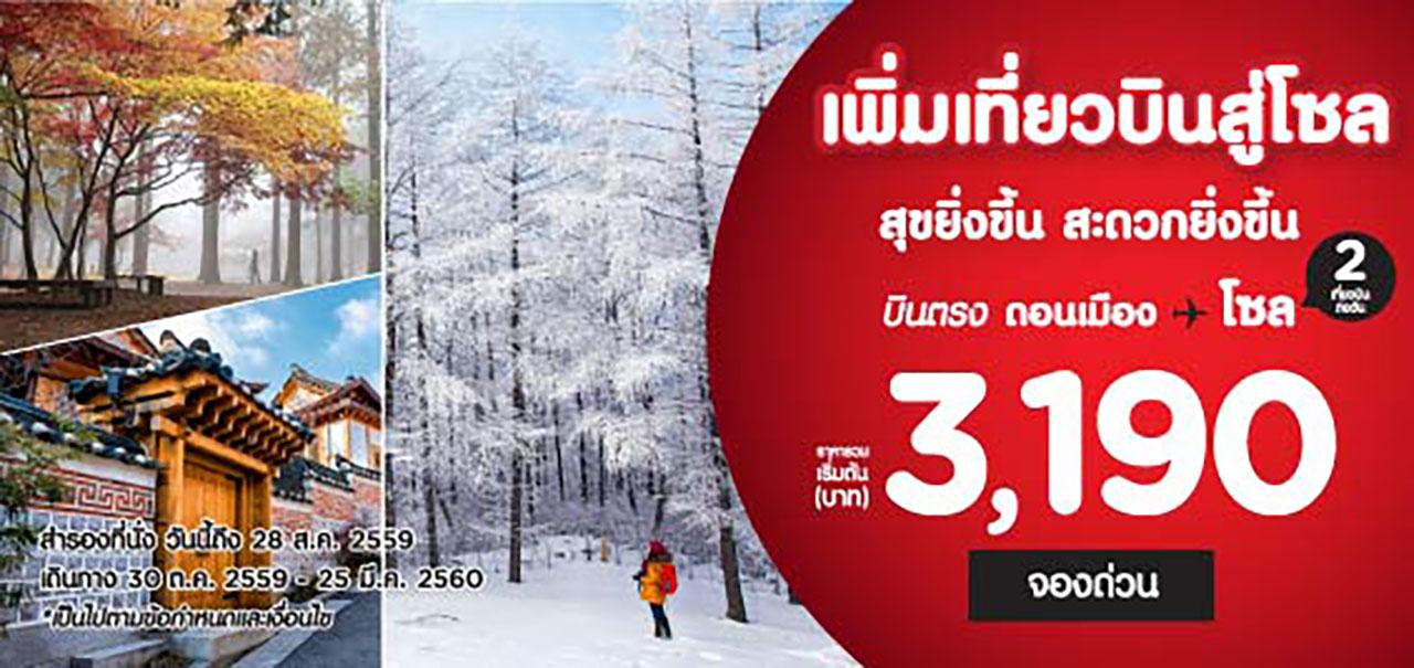 ไทยแอร์เอเชีย เอ็กซ์ ต้อนรับไฮซีซั่น เพิ่มเที่ยวบินที่ 2 บินตรงจากกรุงเทพฯ สู่กรุงโซล ประเทศเกาหลีใต้ "โปรโมชั่นประหยัด เริ่มต้นที่ 3,190 บาท" สำรองที่นั่งได้ตั้งแต่วันนี้ - 28 ส.ค. 2559 โดยเริ่มบินตั้งแต่ 30 ต.ค. 2559 - 25 มี.ค. 2560 ที่ www.airasia.com