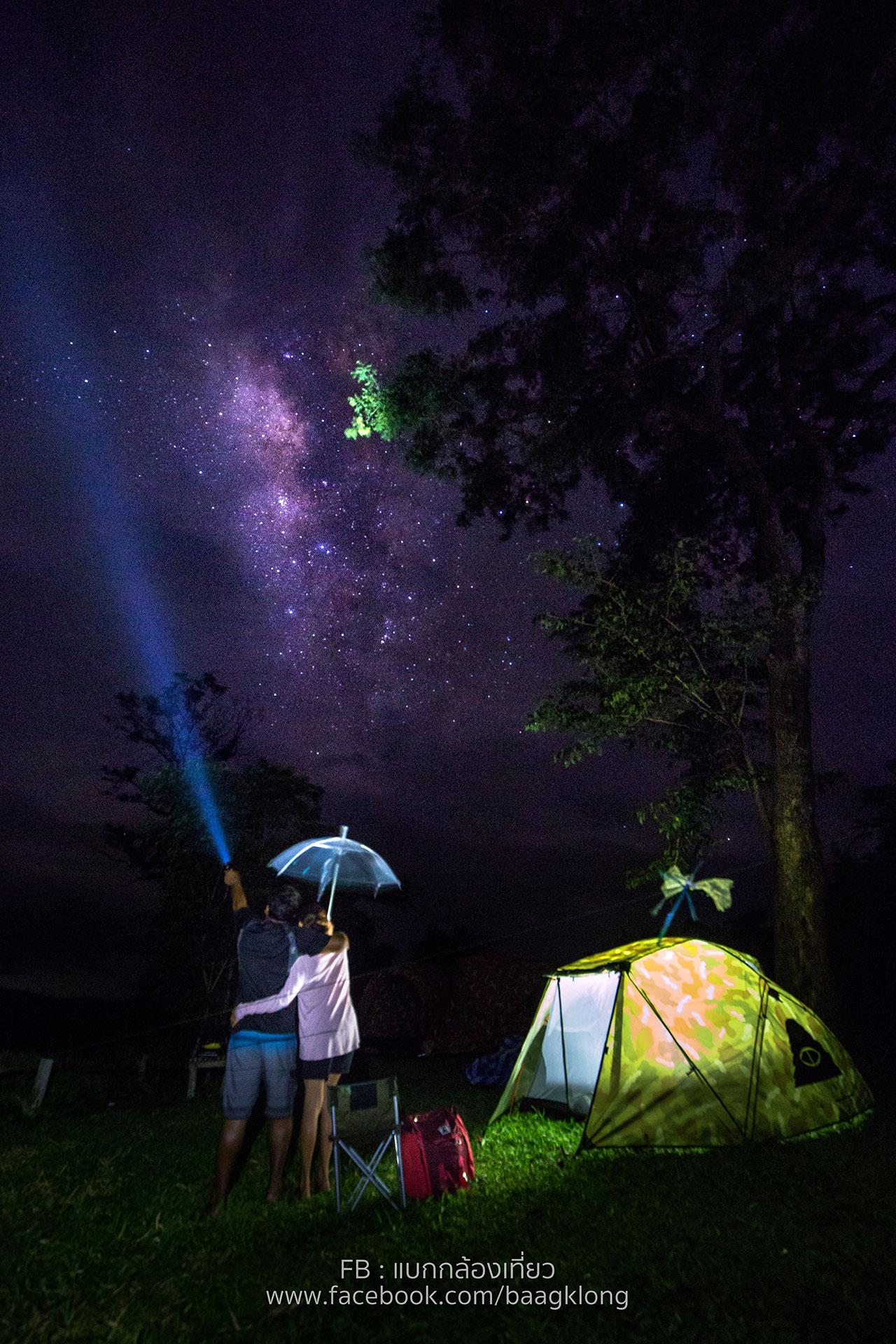 การเดินทางทริปนี้ของเราอยู่ในช่วงหน้าฝน จึงใช้รถขับเคลื่อน 4 ล้อ ขึ้นมาถึงก็กางเต็นท์แล้วทำอาหารกันเอง อากาศหนาวๆ ฟินมาก โชคดีที่ฟ้าเปิดมาให้เราได้ถ่ายทางช้างเผือกได้แค่ 4 นาทีเท่านั้น หลังจากนั้น พี่ฝนก็แวะมาทักยันเช้าเลย